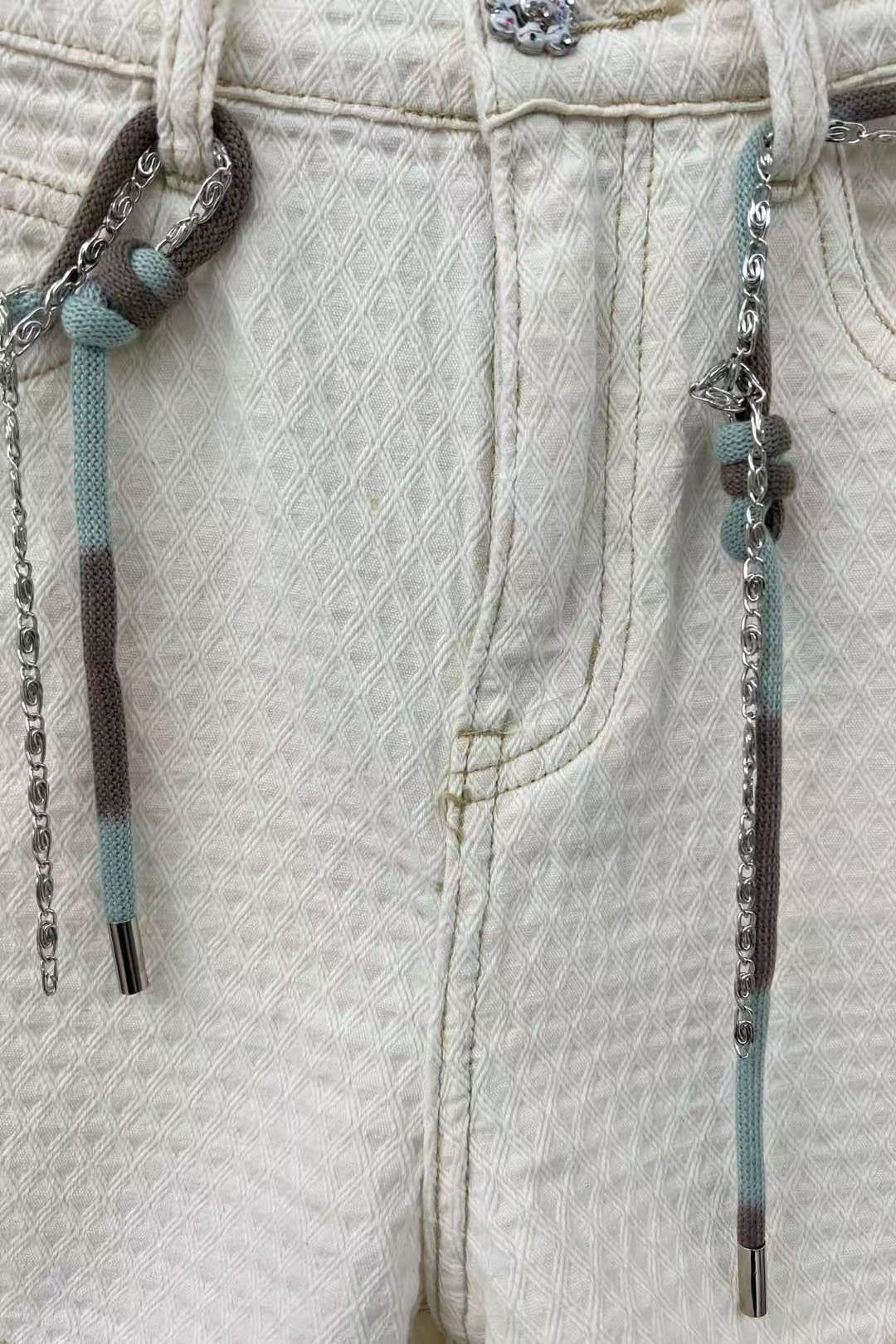 Die handgefertigten kleinen Gesäßtaschen sind mit Stickereien und Jacquard-Verarbeitung gestaltet. Sie lassen Sie sofort wie eine wohlhabende Tochter aussehen. Sie ist schlicht, modisch und langlebig und kommt nie aus der Mode. Die Textur ist großartig und die hoch taillierte Version lässt Sie schlanker aussehen. Die Textur des importierten Denim- und Baumwollstoffs ist weich und bequem und der Oberkörper betont die Taille perfekt.