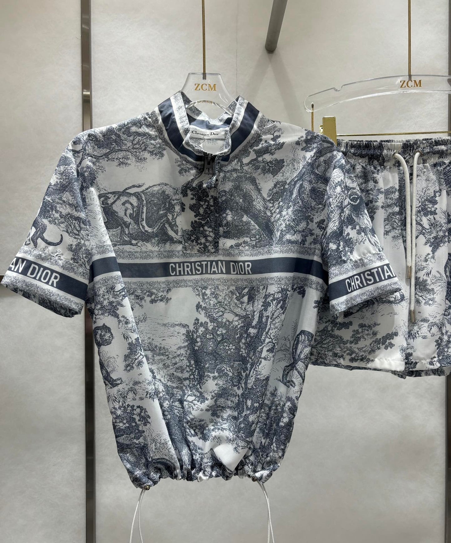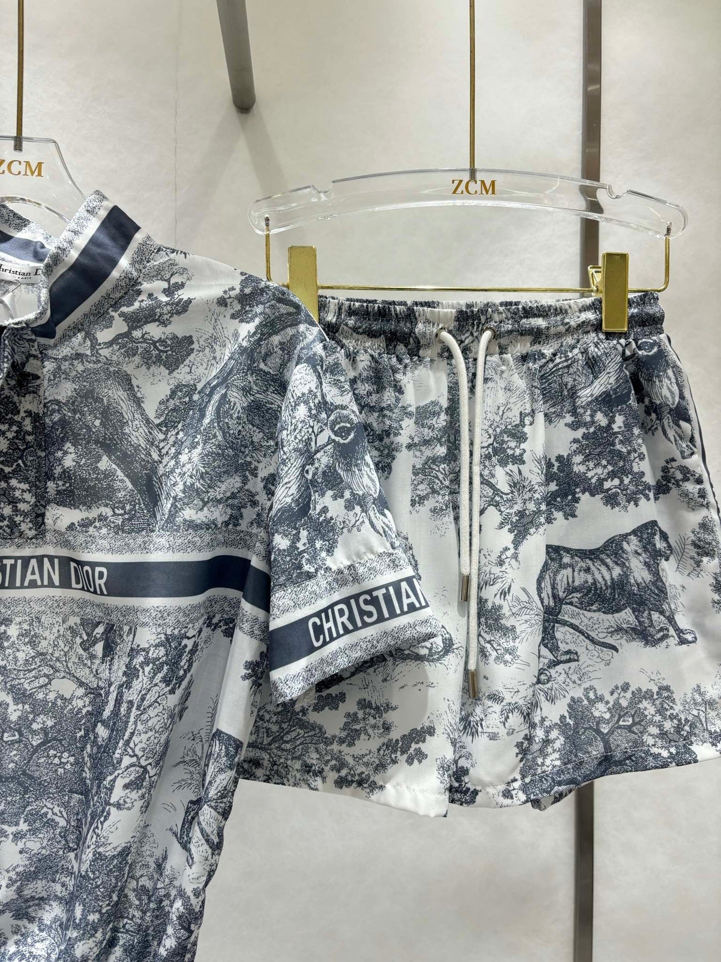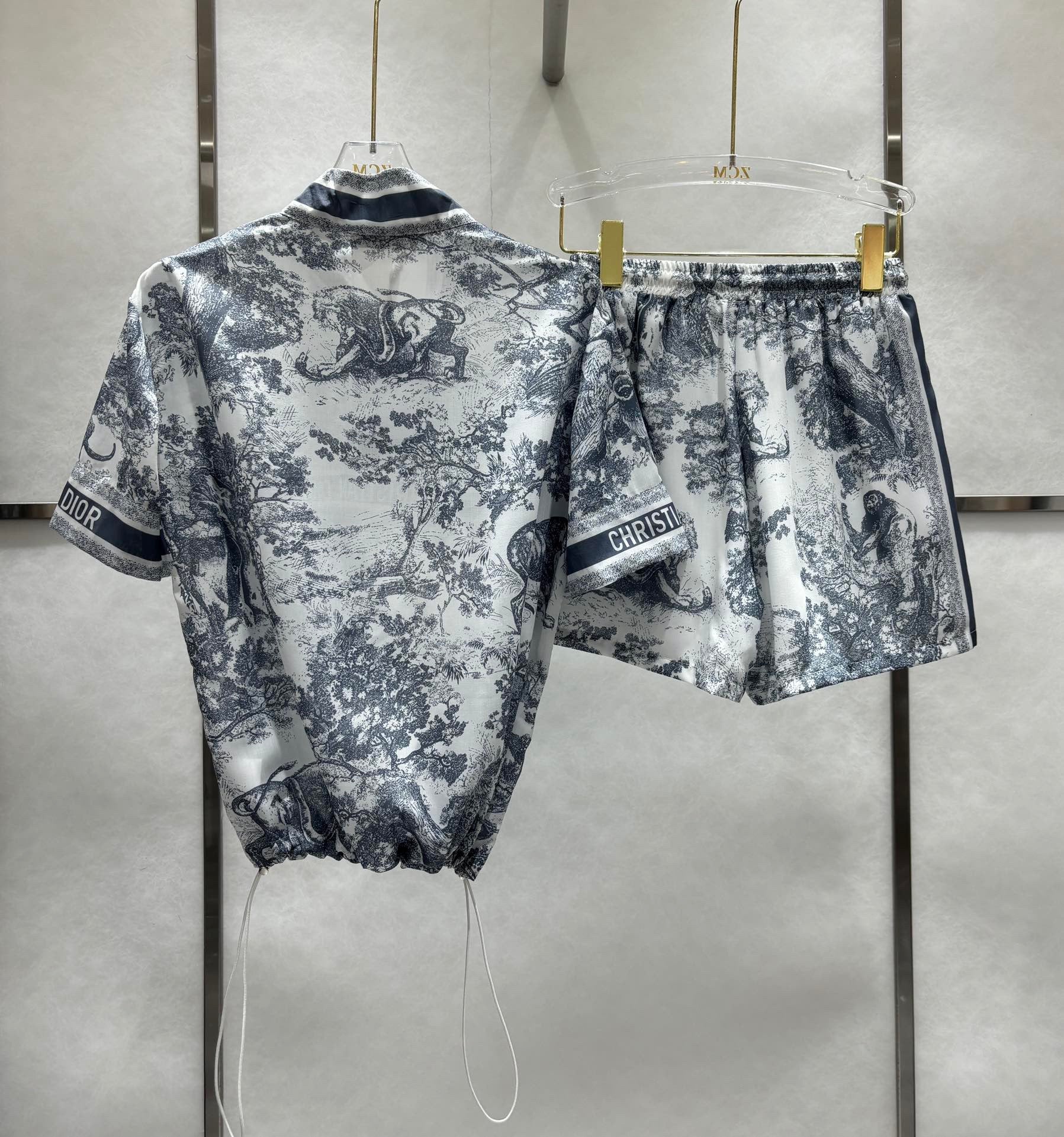 Neue Frühlings- und Sommer-Freizeitkleidung mit Tier-Dschungel-Motiv, kurze Ärmel + elastischer Sportstoff mit hoher Taille, leichter Gaze, super geeignet für heiße Sommer, bequem, atmungsaktiv, erfrischend, kühl, florale Inspiration, Fusion-Tier, französische Eleganz, insgesamt fest gefärbter Stoff mit aktiver Drucktechnologie, luxuriös und modisch, voller High-End-Gefühl, lockere, lässige Version des Oberkörpers, um das Alter des Mädchens zu reduzieren, das Gefühl kann süß oder salzig sein, Sport-Freizeit
