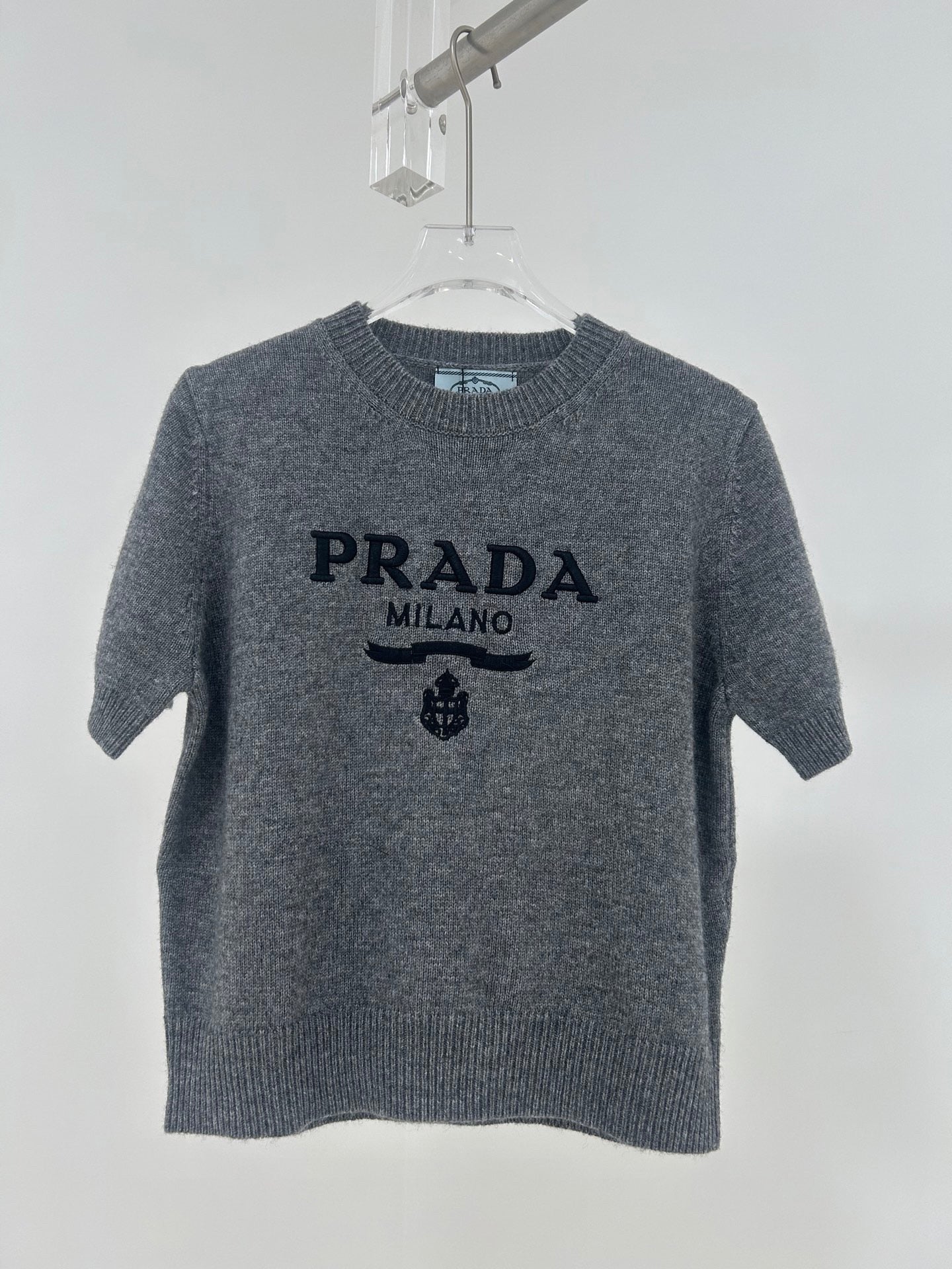 Manches courtes en laine tricotée avec logo lettre brodé 3D