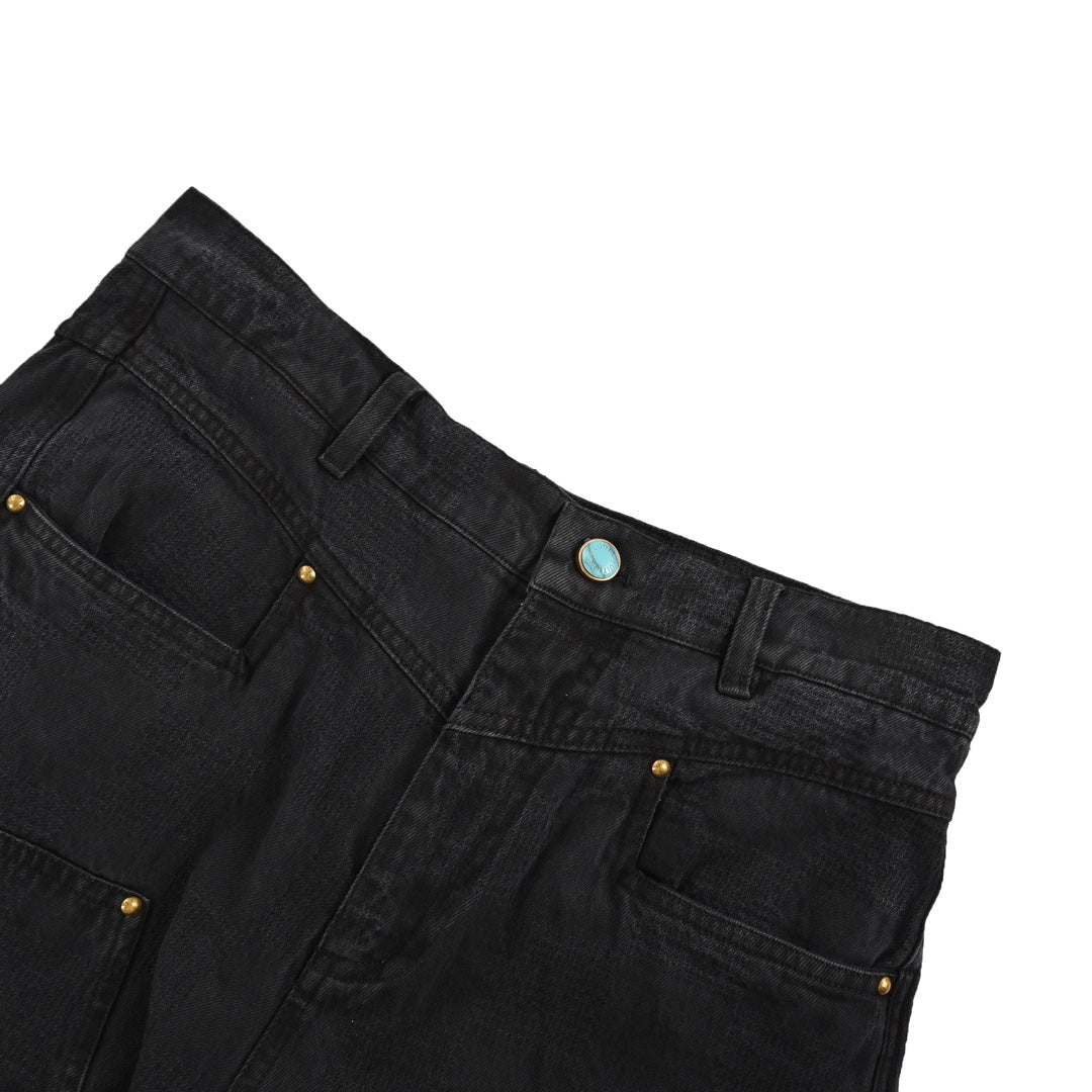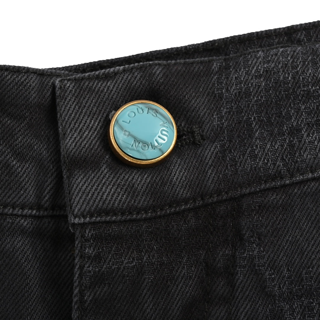 Le nouveau pantalon en denim arbore le motif Damoflage du défilé, un patchwork de motifs vieillis et d'effets délavés. Ce modèle prêt-à-porter est orné du logo 1.Vuitton et d'une veste en jean pour un look décontracté et élégant ! Unisexe !