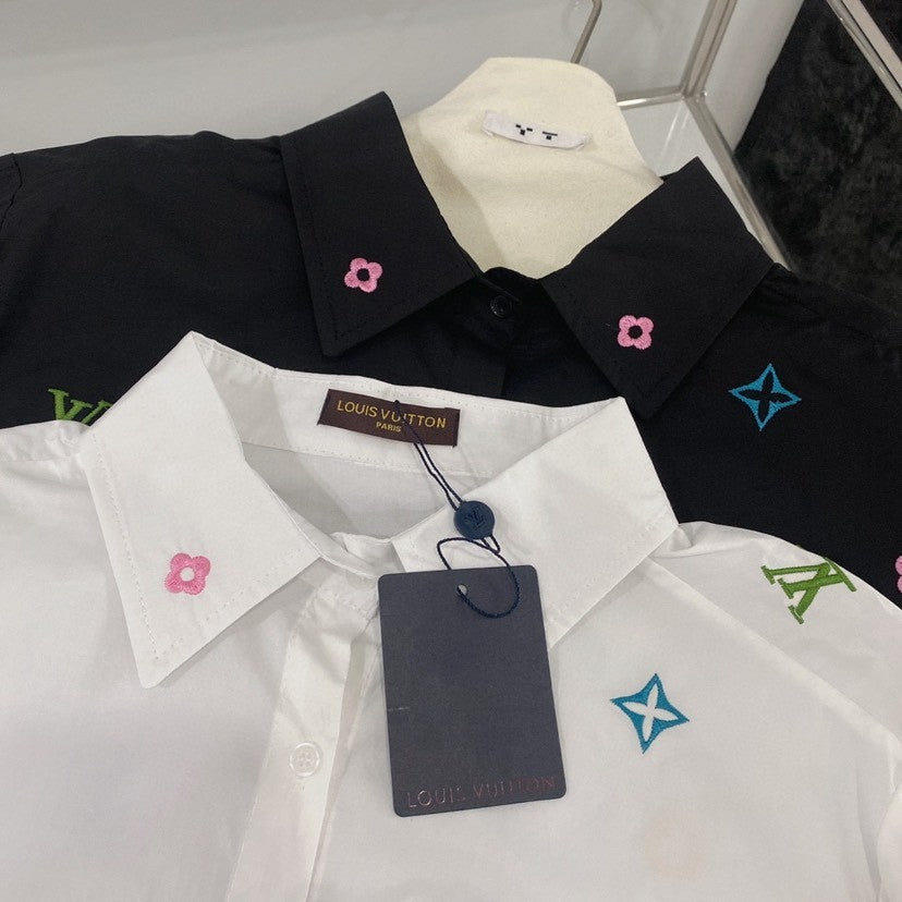 - Toile monochrome : Les bases blanches et noires austères amplifient les teintes vives de la broderie, transformant chaque chemise en une toile vivante d'énergies contrastées - raffinées mais ludiques, structurées mais libres.