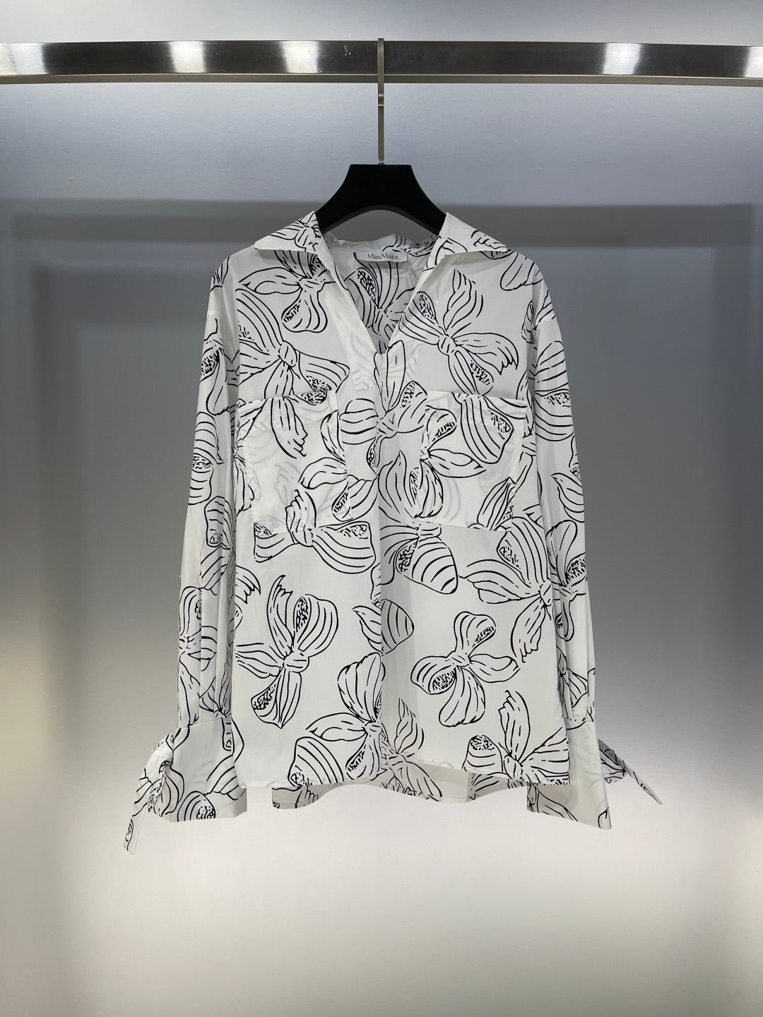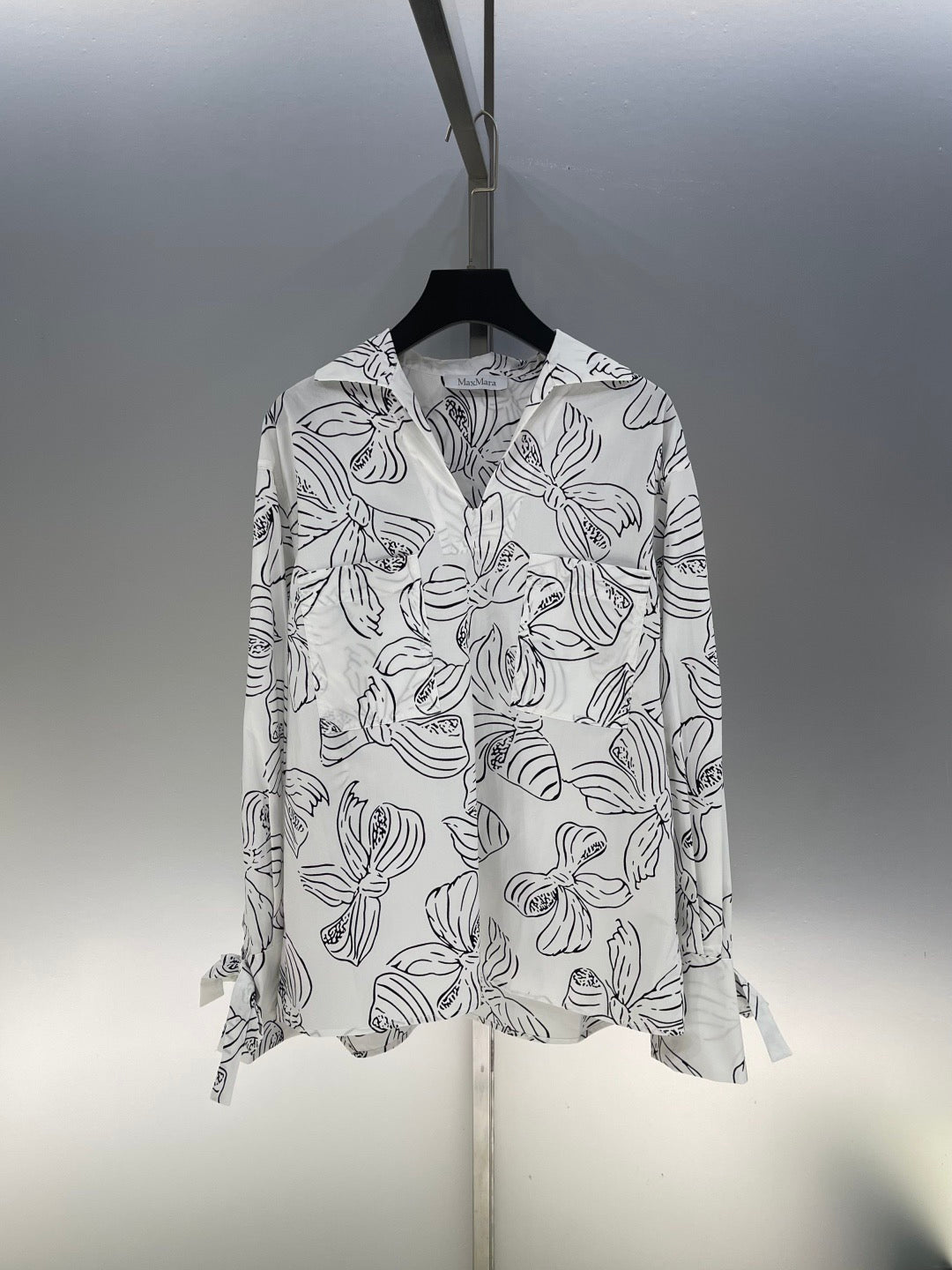 Max Ma* 25 new bow print v-neck long-sleeved shirt! The three-dimensional tailoring is simple and elegant. The loose version is a versatile item with a full sense of luxury.