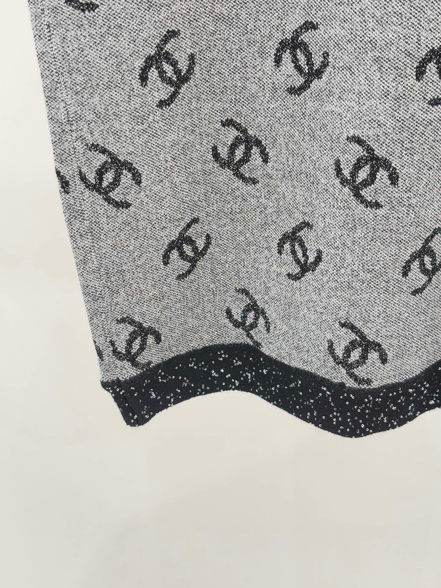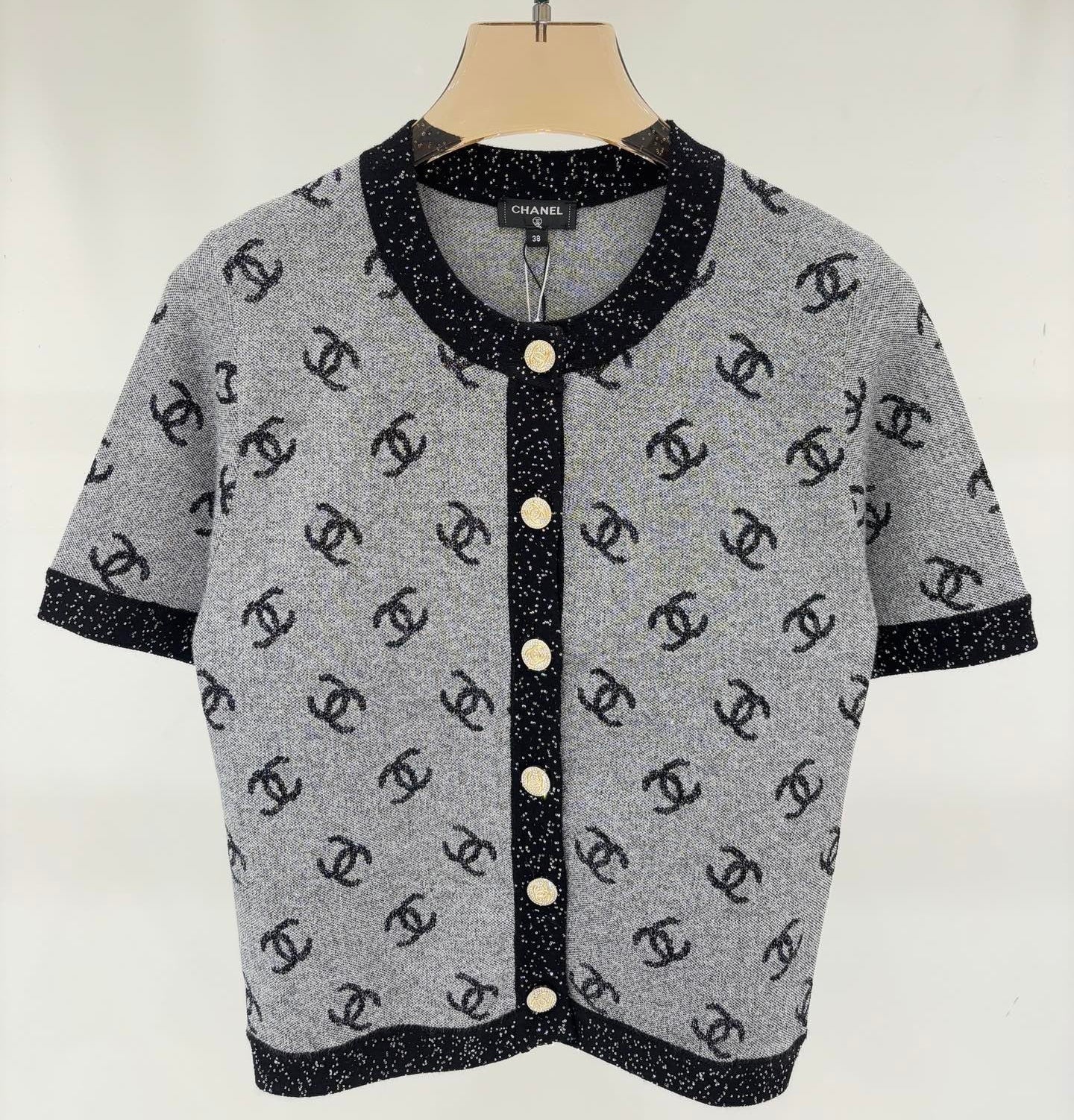 This stylish summer essential features a relaxed fit with subtle elegance. The round-neck design showcases a bold letter logo in intricate jacquard pattern, while metallic thread detailing along the edges adds luxurious contrast. Made from breathable knitted fabric, it combines comfort with eye-catching appeal.