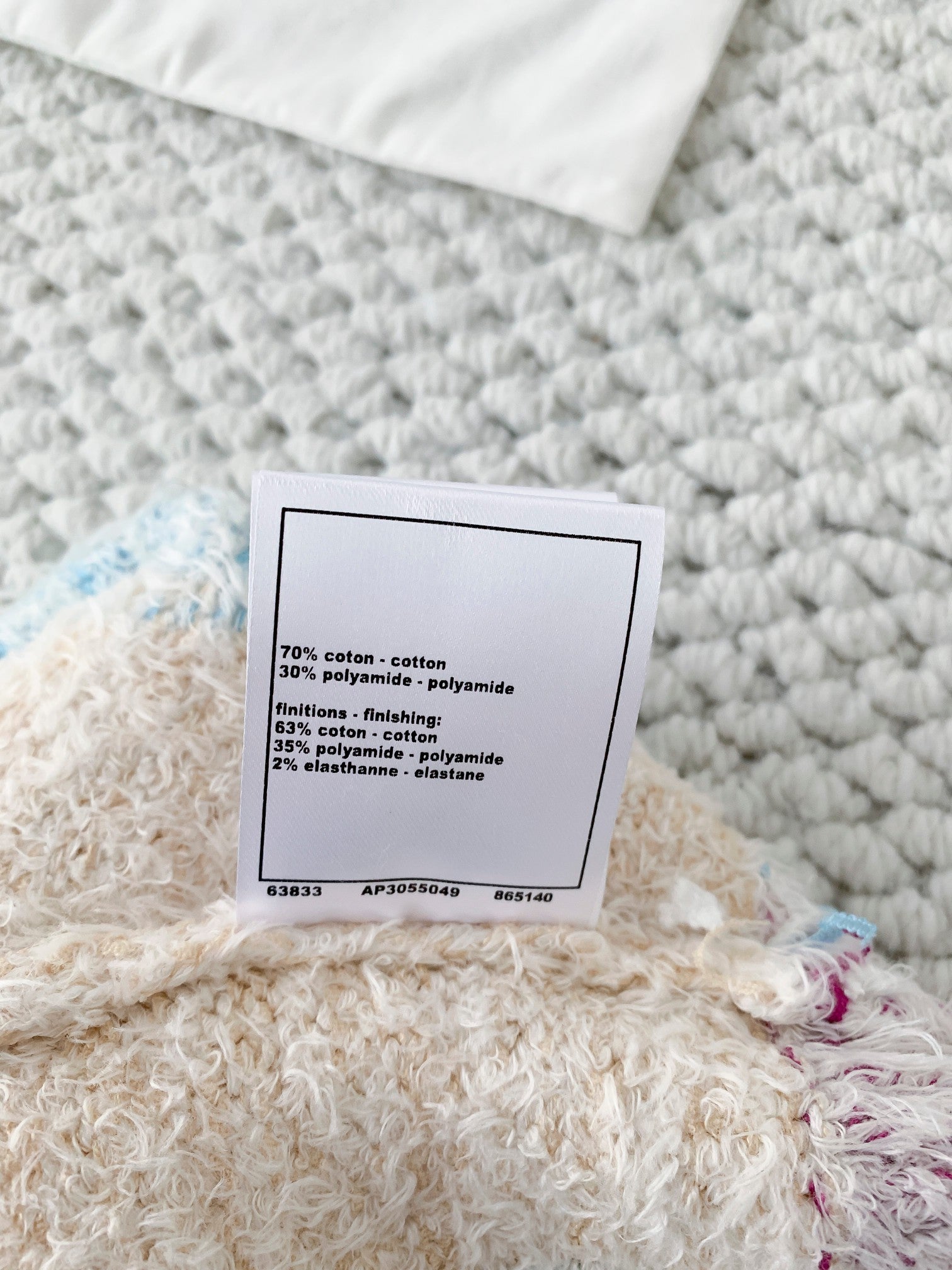 This cropped bandeau top reimagines textile art as wearable architecture — a mosaic of plush knit panels (in whisper-soft hues of periwinkle, blush, and lavender) converges with gilded buttons, fusing tactile warmth with polished daring. It’s a study in contrasts: the knit’s fuzzy softness collides with the hardware’s sleek sheen, redefining the language of modern layering.