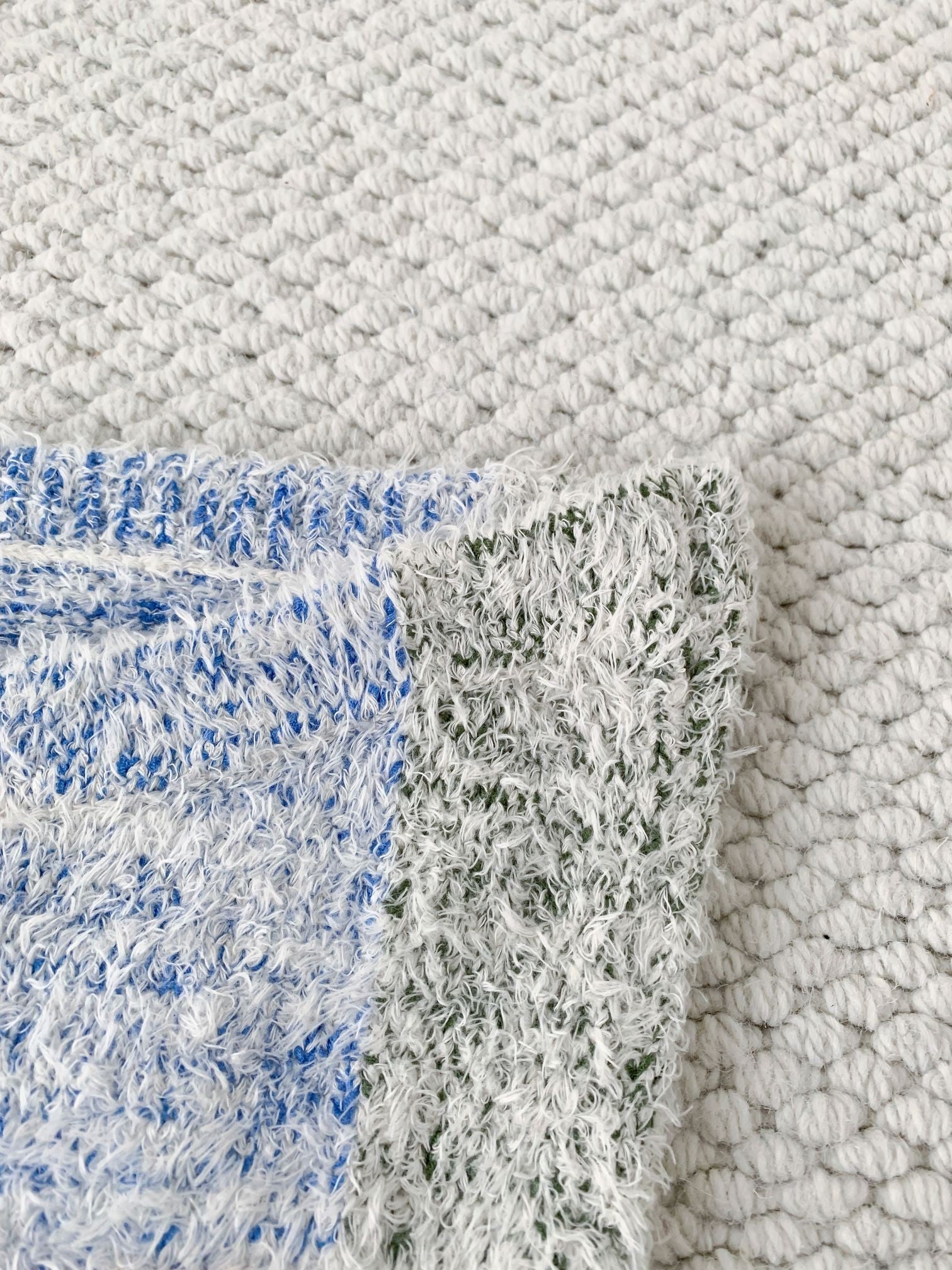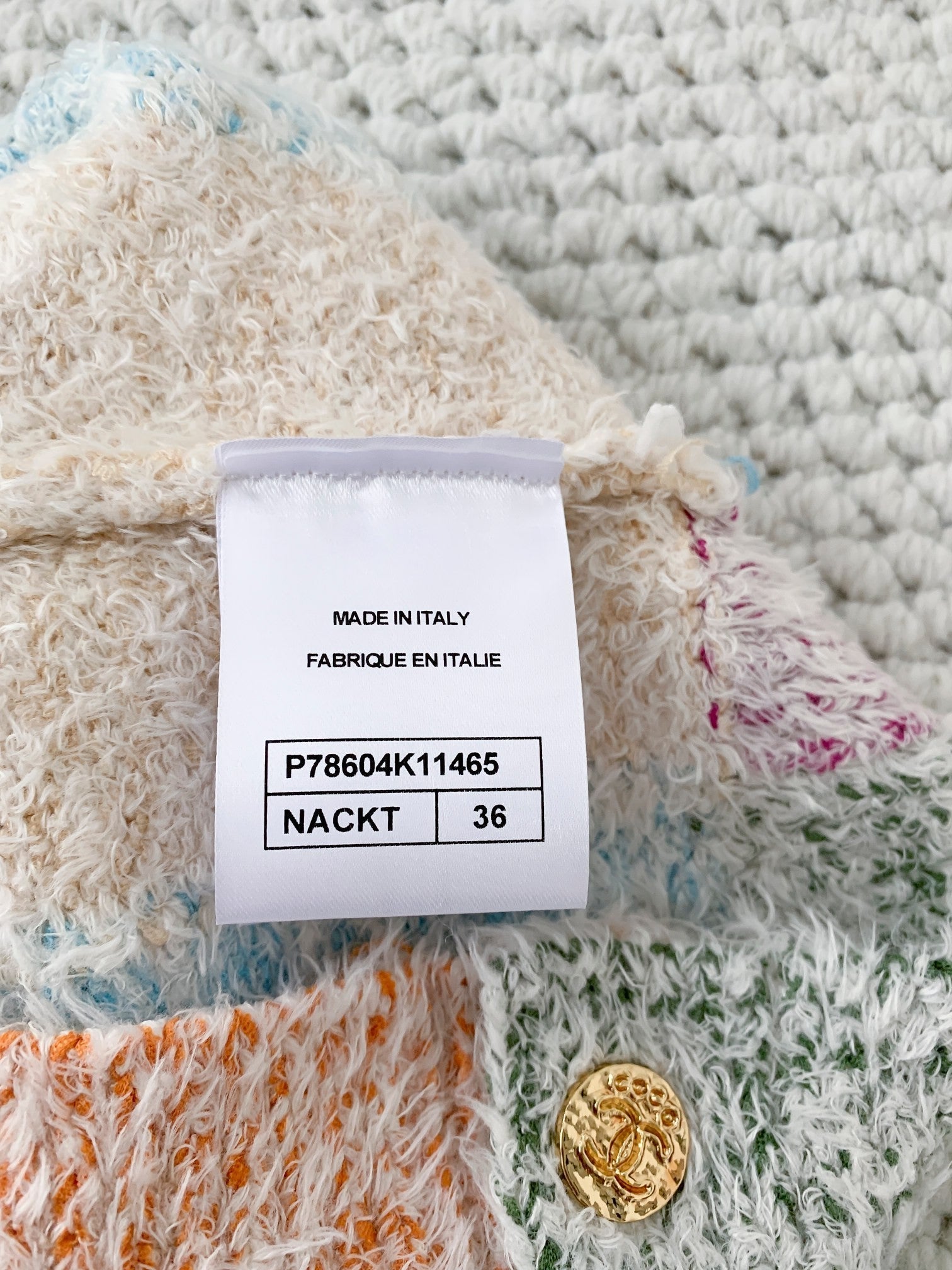 Crafted from a luxury knit blend (infused with silk for a cloud-like drape), the top feels weightless yet retains its shape through wear. The patchwork construction — a feat of meticulous handcraft — showcases texture and color in silent harmony, proving that comfort and couture can coexist.