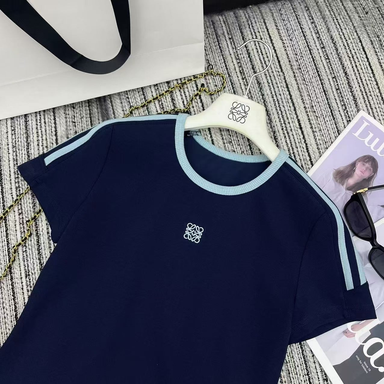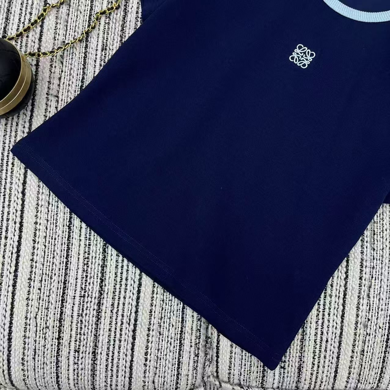 Contrast color short-sleeved elastic waist wide-leg pants suit