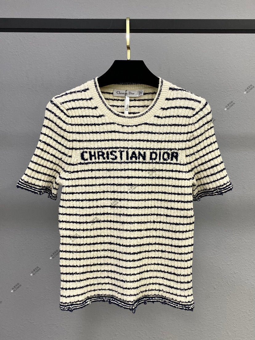Real shot, D's 🏠 new jacquard letter logo striped round neck short-sleeved knitted top, workmanship details in place 👍 high quality ✔️ apricot stripes, sml