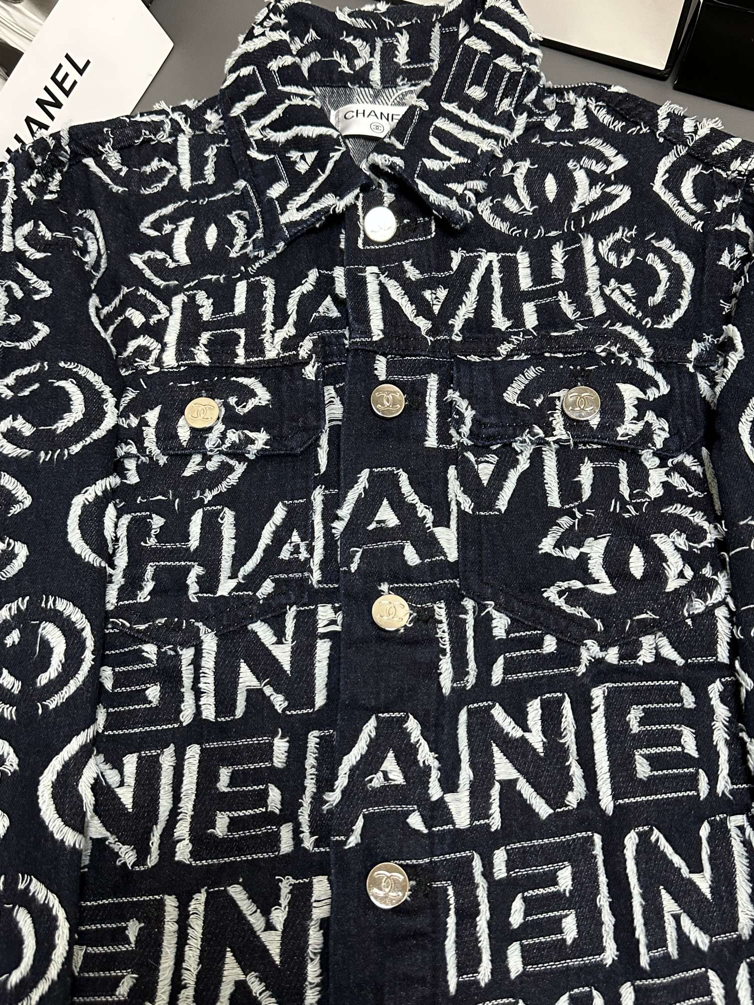 Denim jacket with full-print letters