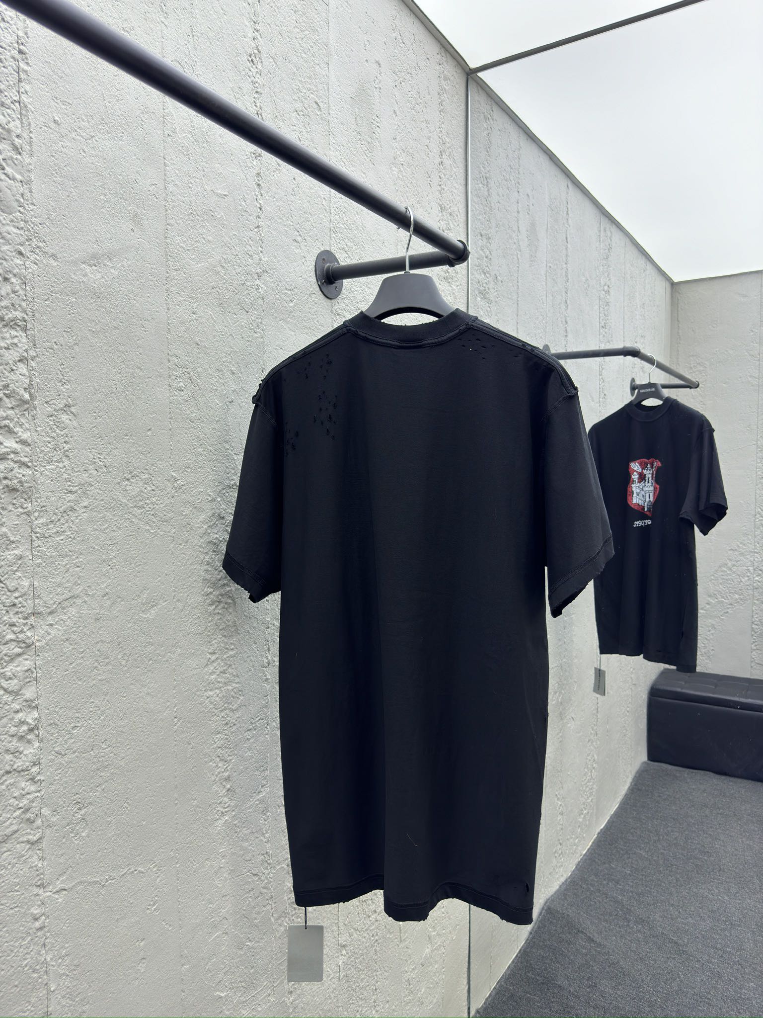 Distressed hole-in-the-wall castle t-shirt short sleeve