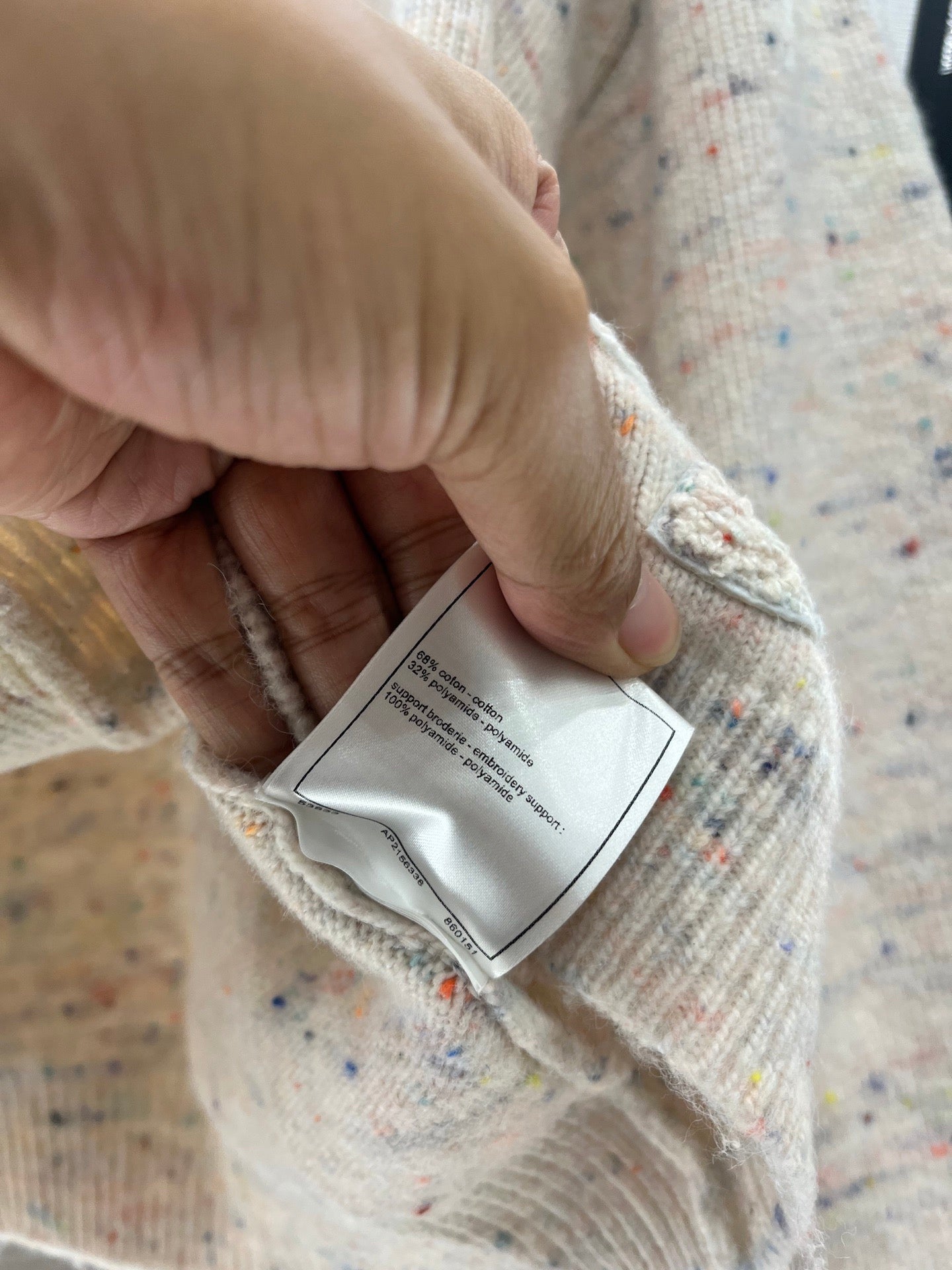 Crafted from custom YB cotton yarn, this cardigan boasts a refined texture and is comfortable and comfortable to wear. This short V-neck cardigan features a twist-button design that flatters the neckline and adds a touch of sophistication. The cardigan features a 3D plush double-C logo throughout, while the vibrant, colorful background adds a touch of energy. This stylish cardigan breaks the dull autumn and winter vibes and offers a stylish and sophisticated look. Custom fabrics and accessories are available. Check for the latest version. Available in three colors. 𝟯𝟲 𝟯𝟴 𝟰𝟬