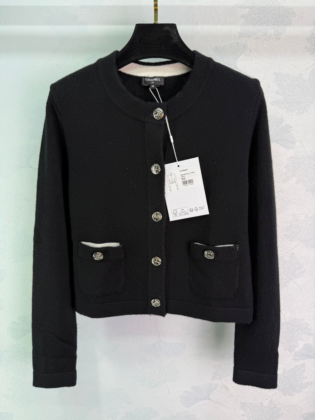 025 Early Fall's latest collection! Double-pocket knitted round-neck long-sleeved cardigan! Custom-made YB wool yarn for soft, skin-friendly comfort and style. Round-neck long-sleeved cardigan with elastic adjustment for just the right amount of skin exposure, flattering head-to-shoulder ratio and slimming effect. Solid-colored base for the main body. Embroidered lace cuffs create a strong retro look. Brand-specific double-C enamel buckles highlight your taste. Loose fit accommodates your figure, playful and youthful, making you look whiter. Easily wear it for everyday travel or gatherings! 2 colors and 3 sizes sml