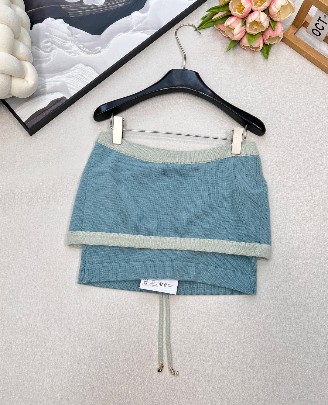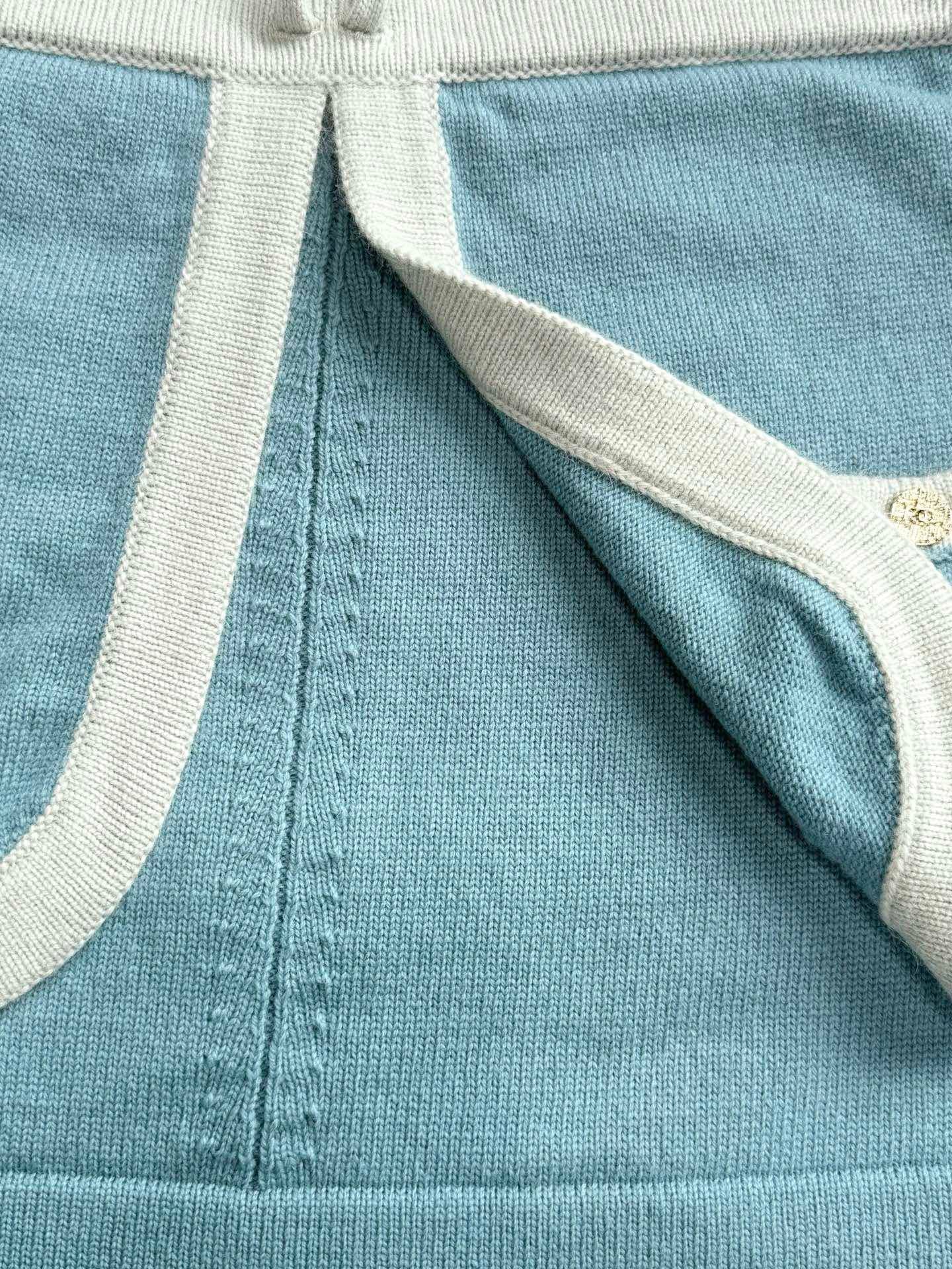 - Knit Skirt: Woven from a luxury knit blend (infused with silk for cloud-like softness), it drapes with effortless grace. The contrast trim (in crisp cotton) adds structural definition, while the drawstrings (finished in tonal knit) ensure cohesive playfulness.