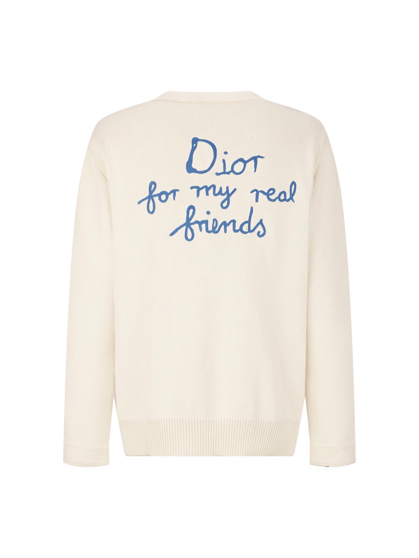 This cardigan showcases the collaboration logo. Crafted from white cotton-blend jersey, it features embroidery on the front and back, a button closure, and ribbed trims. It enhances any look.