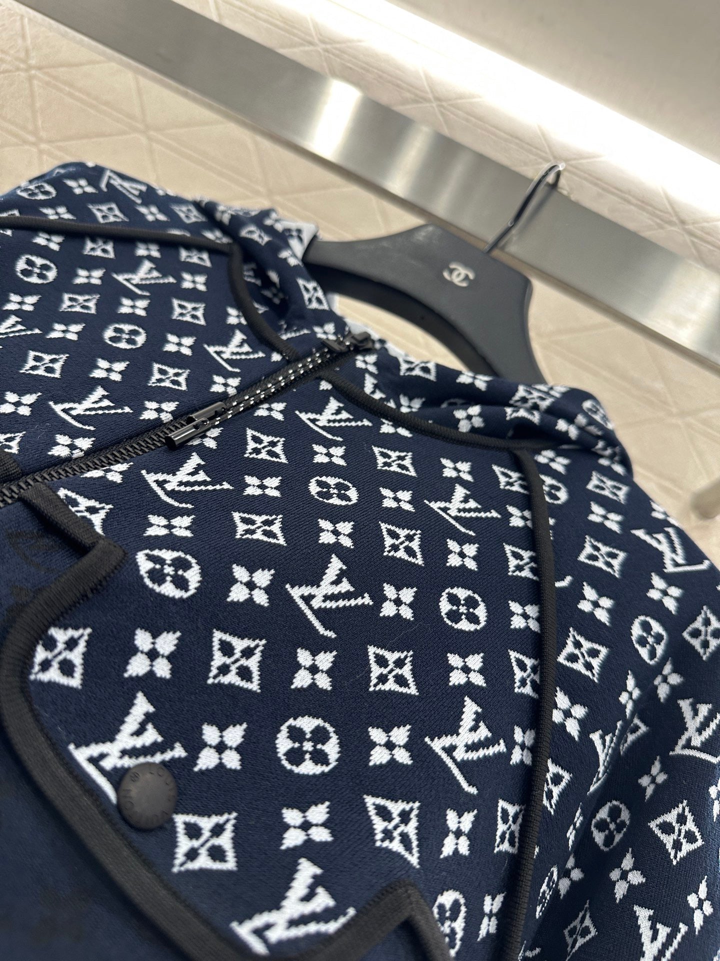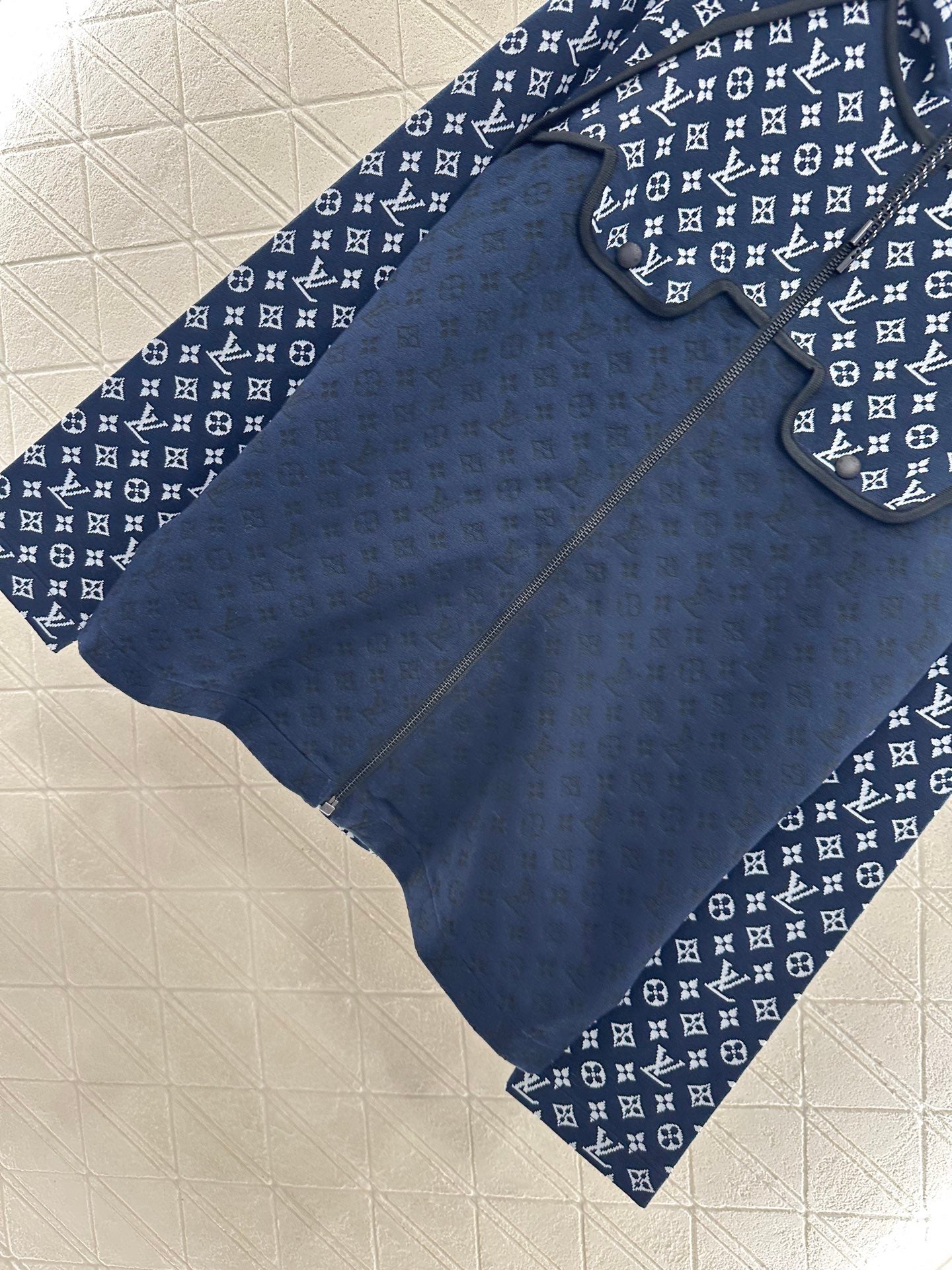 Crafted from custom YB silk-cotton yarn, this jacket boasts a luxurious, refined texture and is comfortable to wear. The zippered hooded jacket features an easy on/off zipper. The jacquard logos on the shoulders and chest add a touch of personality, highlighting the brand's positioning and enhancing the quality. The low-key, luxurious pattern on the lower half adds a stylish touch to the overall look, creating a trendy and fashionable look.