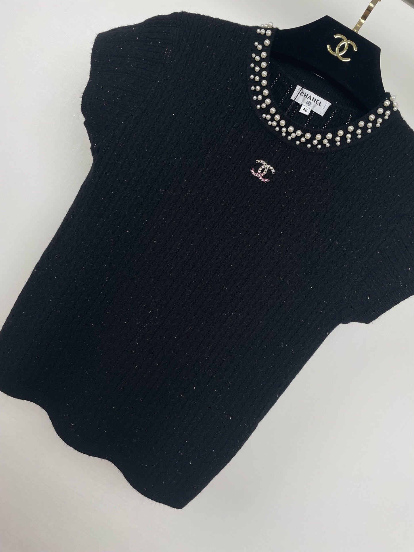 Craving a top that merges timeless elegance with effortless versatility? This Pearl-Trim Ribbed Knit Short-Sleeve Top is your answer — where delicate details meet polished comfort.