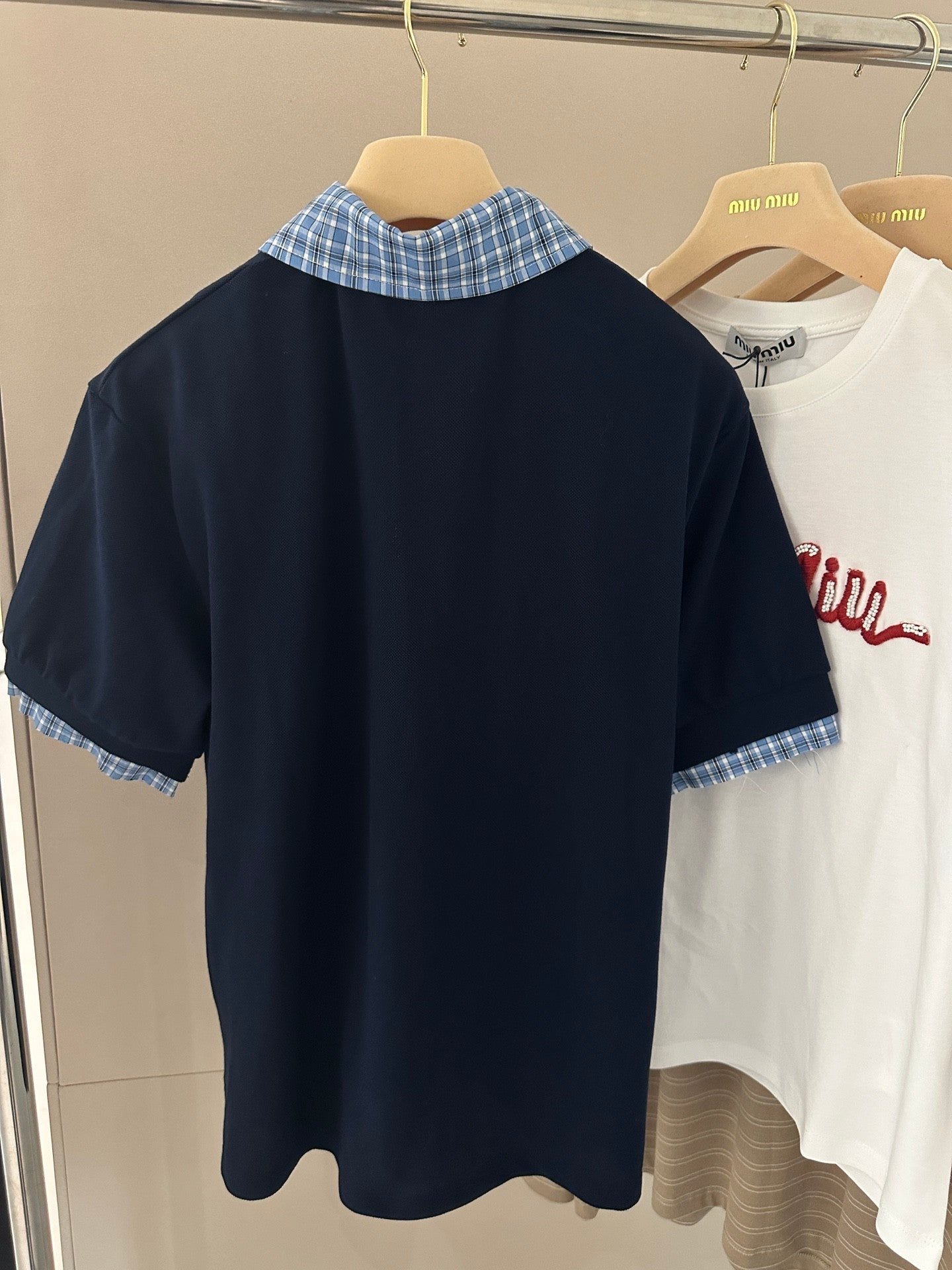 - Faux Two-Piece Illusion: The contrast plaid collar and cuffs create a layered, “假两件” look without the hassle of layering — instantly elevating the classic polo silhouette with retro academia vibes.