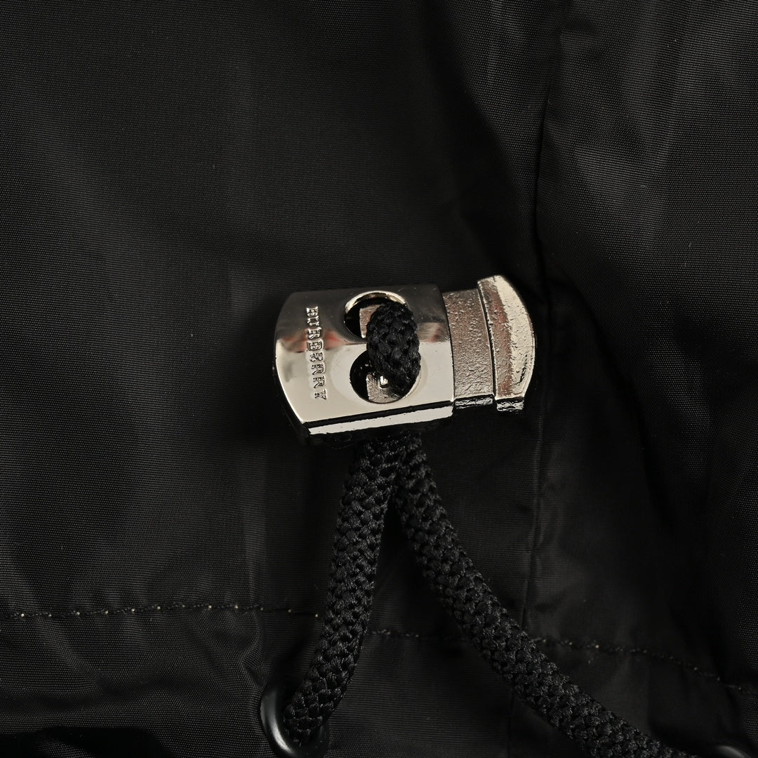 Lightweight hooded jacket, made of woven nylon fabric, designed with an adjustable drawstring hood and double zipper design! Appliqué embroidered knight's horse at hem. Perfectly improves overall height. It perfectly demonstrates the presence of the BUR brand and is highly recognizable with a classic regular silhouette design. Both the recognition and personality are very good, and it can be easily worn to reflect the young lady's pursuit of fashion.