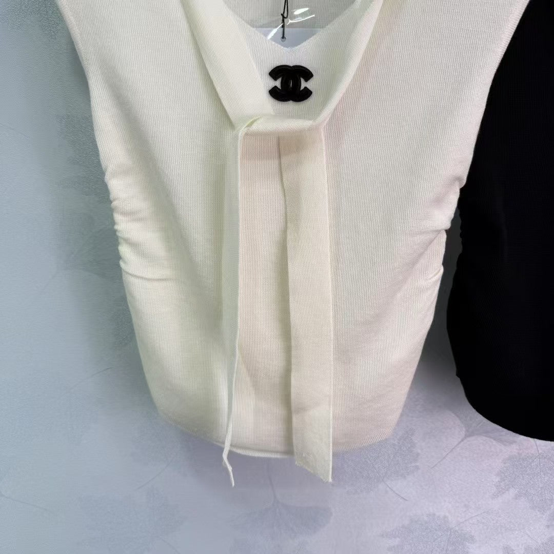 The latest collection for spring and summer 2025! Pleated v-neck knitted vest! Made of custom wool yarn, soft and comfortable, stylish and slimming. V-neck vest cut, three-dimensional pleats on the front and neckline, with double c logo, adding a sense of layering to the shape, sexy and charming, versatile and slimming, the first choice for summer fashion!
