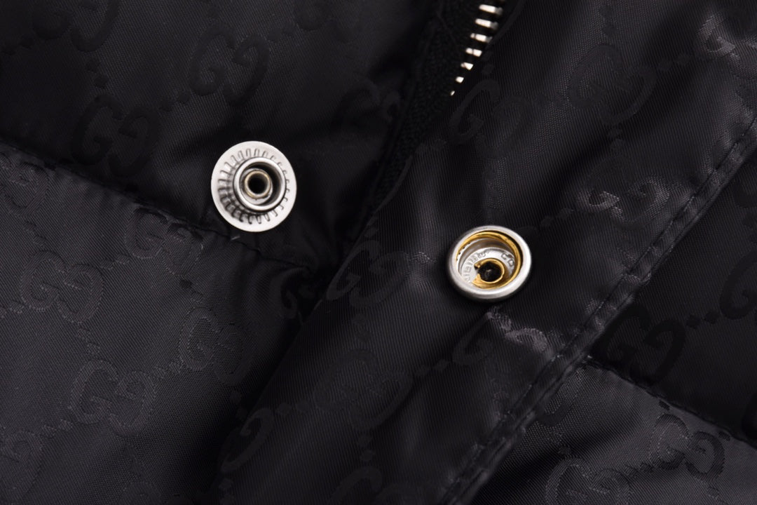 The fabric is made of custom-woven jacquard high-density nylon waterproof material, and the filling is made of RDS-certified high-quality national standard 580g 90 goose down filling, which maintains the original softness, elasticity and feel of down. It has three layers of anti-drilling fabric and four layers of locking velvet technology. The sides are made of custom-woven sesame pattern webbing with symmetrical left and right positions, molded genuine antique silver four-button buckles and zippers, and a full set of customized accessories. The workmanship details are perfect.