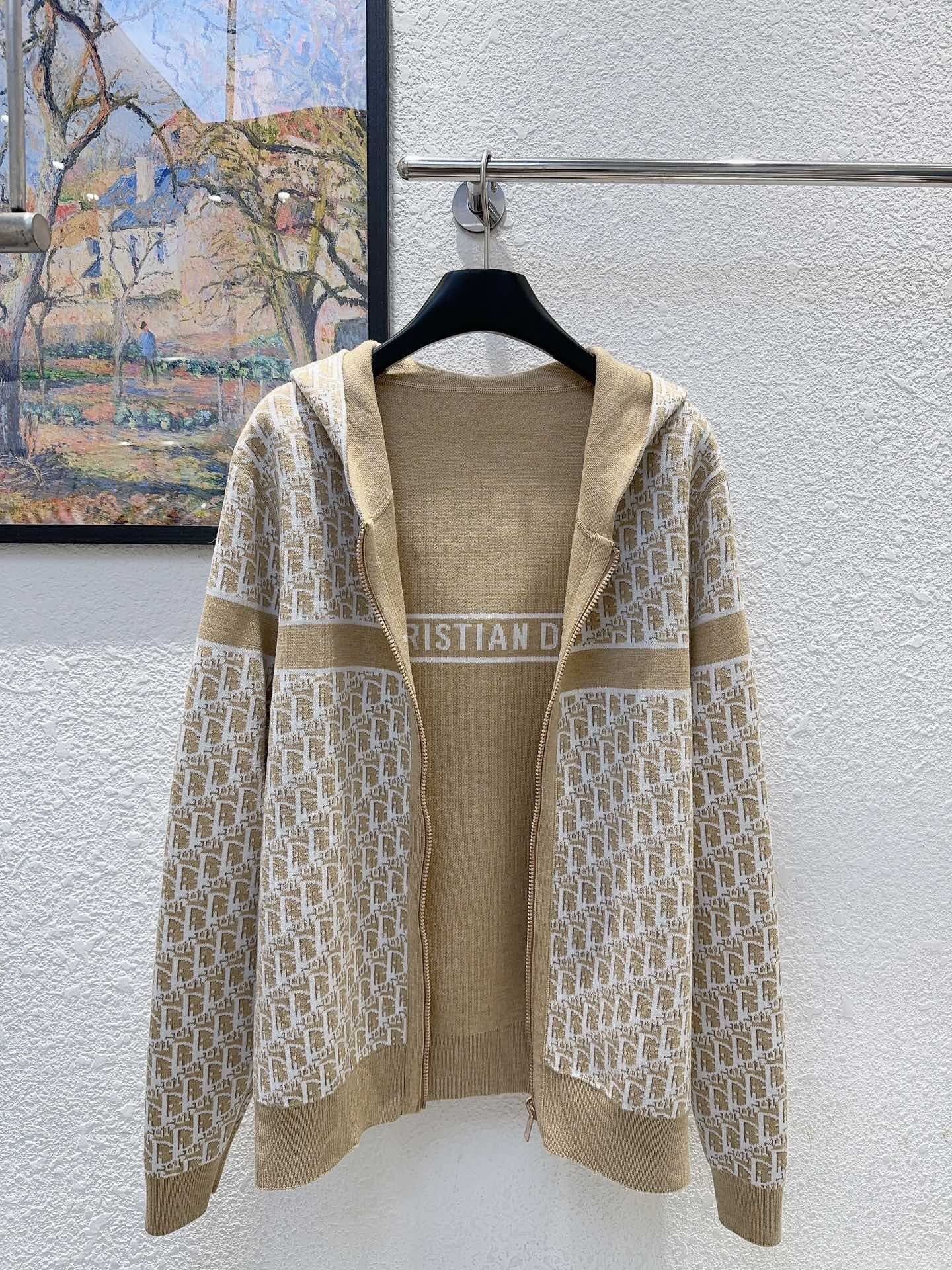 Reversible wool jacket with jacquard hood and zip-up design featuring a logo!