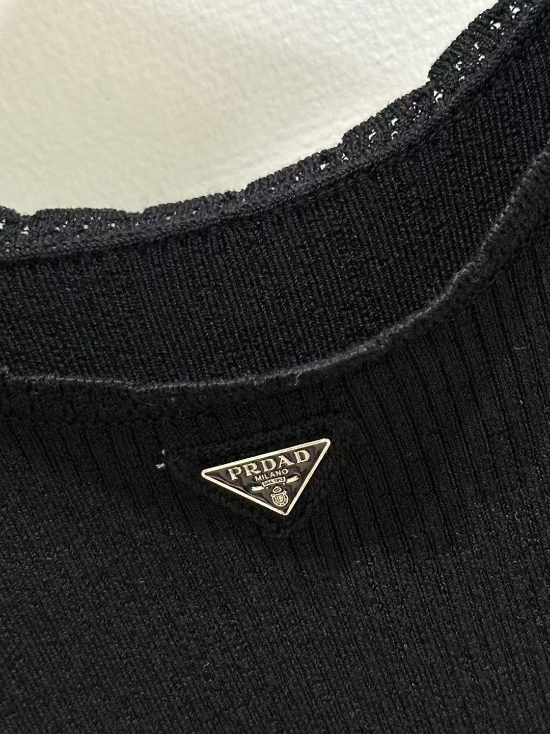 New arrival for Spring/Summer 25SS! Ribbed knit enriches the texture of this lightweight top made of stretch cotton and decorated with lace trim. The refined style features a round neckline and spaghetti straps, decorated with the iconic triangle logo. Ribbed knit Slim fit Round neck Enamel metal triangle logo Lace decoration on the neckline and straps!