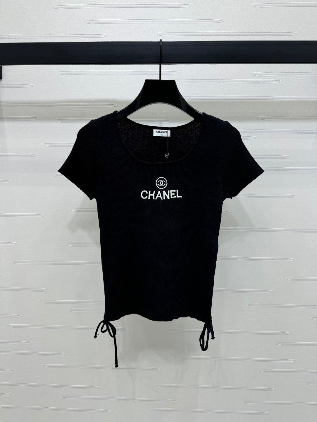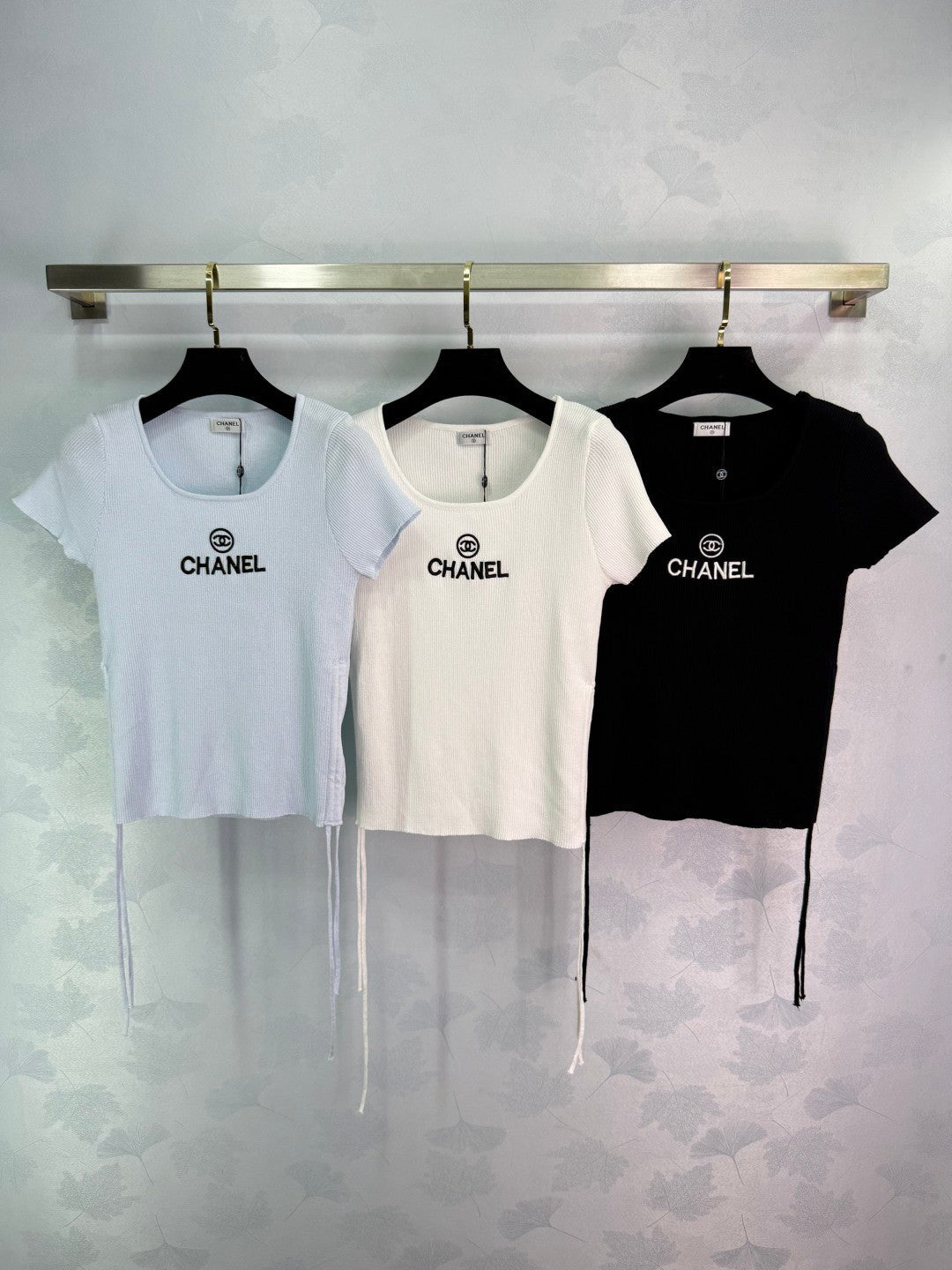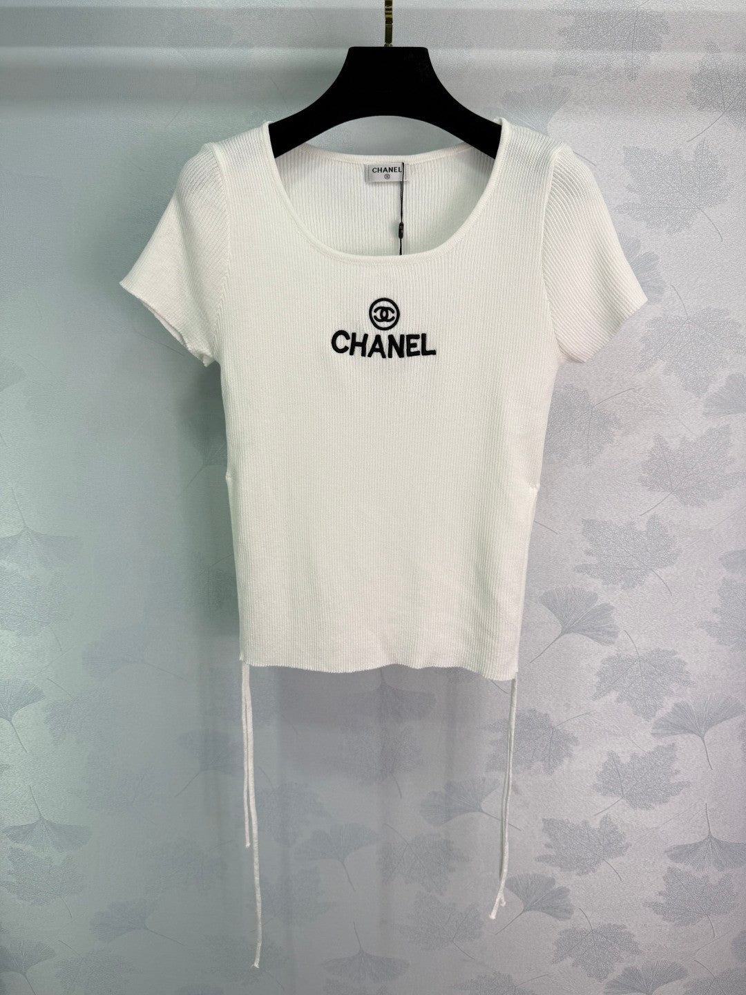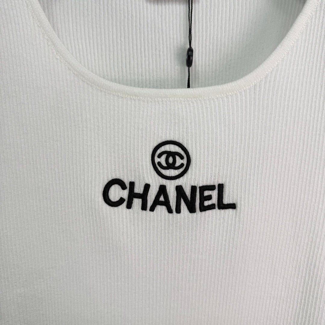 This knit tank reimagines couture heritage with modern audacity — a black tweed base, threaded with subtle metallic flecks (glimmering like stardust), collides with crisp white contrast trim. A tiny iconic emblem anchors the chest, forging a dialogue between classic refinement and contemporary edge, redefining the language of everyday luxury.