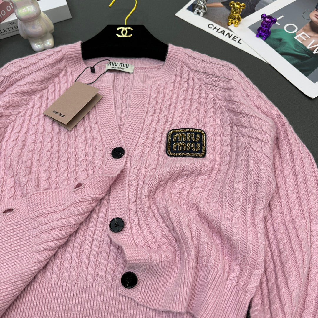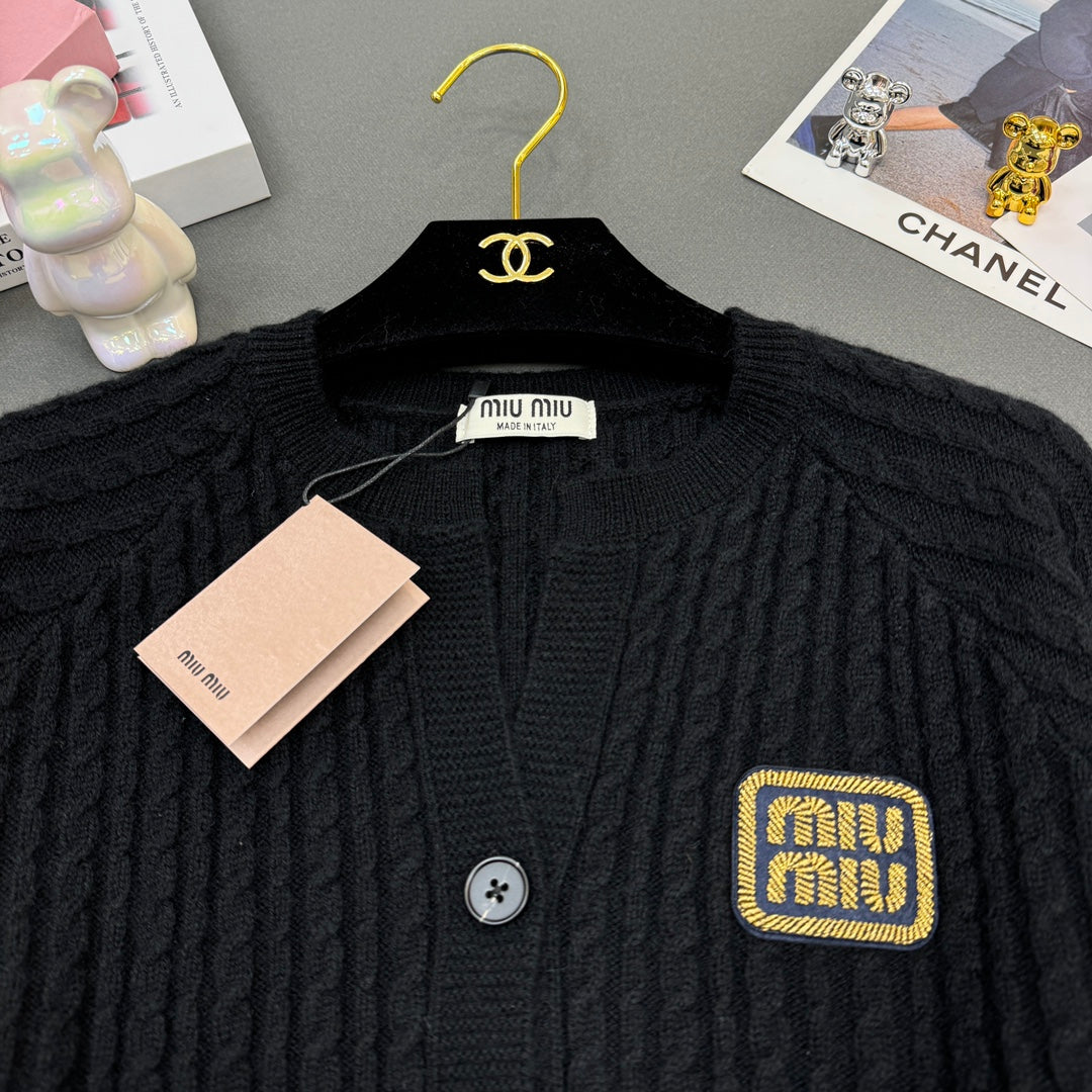 30% cashmere hemp rope fluffy needlework, round neck split cardigan with gold letter seal long sleeves, high-end exquisite temperament, versatile black/beige/pink three-color size sml, ready to supply 💐💐💐
