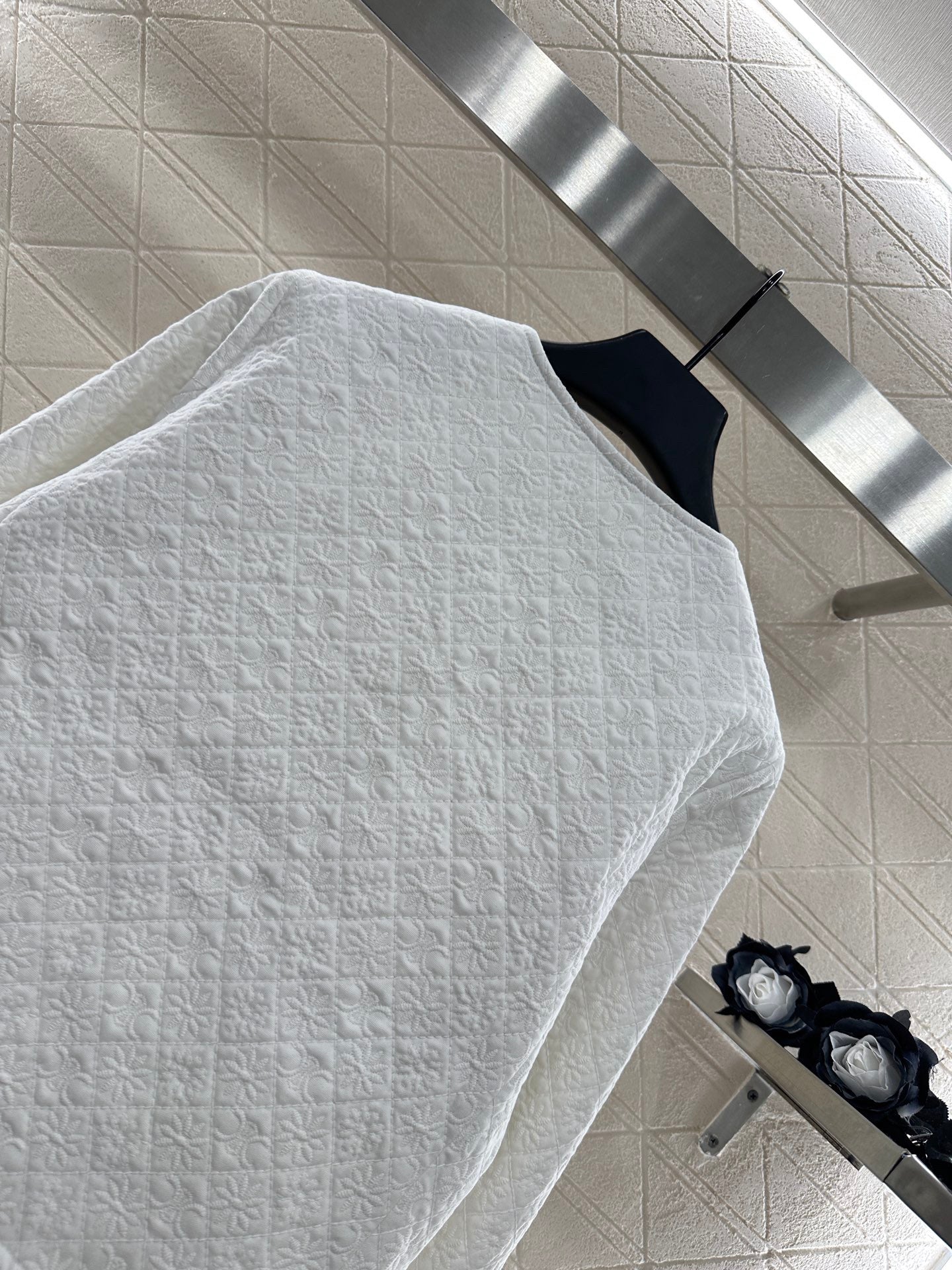 Custom YB twill cotton jacquard fabric. Lightweight and warm. Round neck, straight-shoulder suede design. Adjustable button placket. Quilted lining for maximum warmth and practicality. Diamond-patterned jacquard embossing throughout. Interwoven with the iconic Arc de Triomphe logo, highlighting the brand's identity and style. Symmetrical pockets for added detail. Lightweight and stylish, perfect for any outfit. 👌 Combining warmth and style. Thin down filling for a more three-dimensional silhouette. Replica YB custom fabrics.