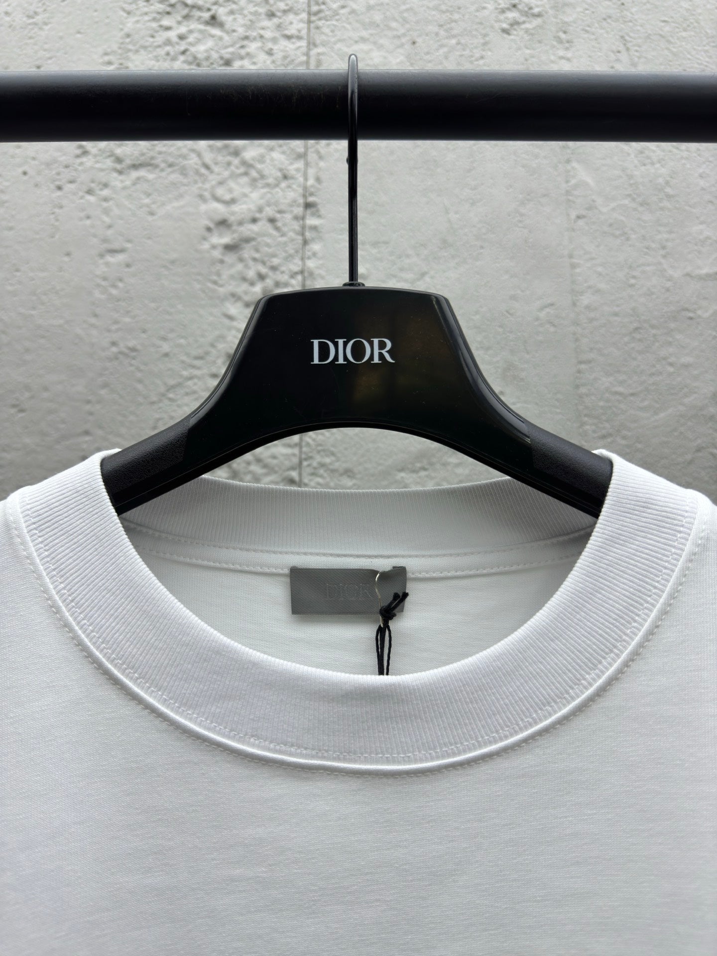 Crafted from cotton jersey with a ribbed crew neck for a classic silhouette. It is made of 26S double yarn fine cotton plain weave, which usually has better breathability due to its special weaving method. Double yarn design, that is, two layers of yarn are interwoven. This structure increases the thickness and density of the fabric. It is a high-quality fabric that combines fineness, durability, warmth and breathability. Needle embroidery is a commonly used technique in the field of embroidery and has unique style and characteristics. The number of times the stitches are repeated highlights the layering and delicacy.
