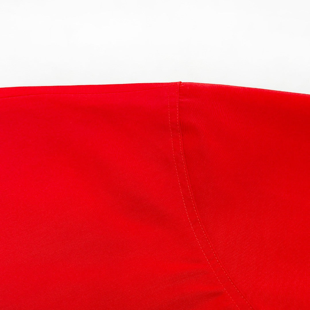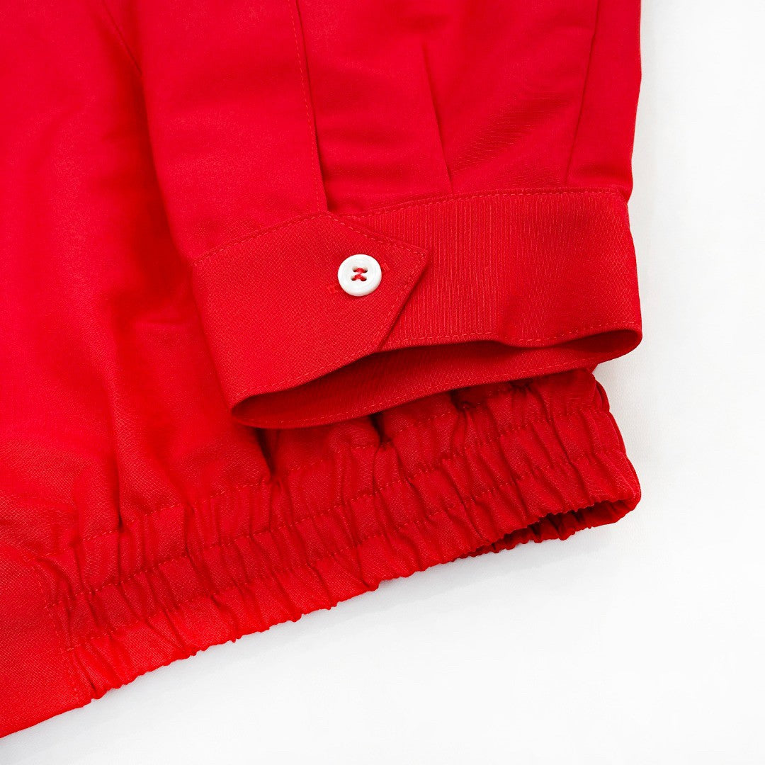 Crafted from a lightweight cotton-blend fabric, both pieces offer breathable ease with a crisp, structured drape. The fabric retains its vivid scarlet color and shape, ensuring enduring vibrancy — a harmony of comfort and confident polish.