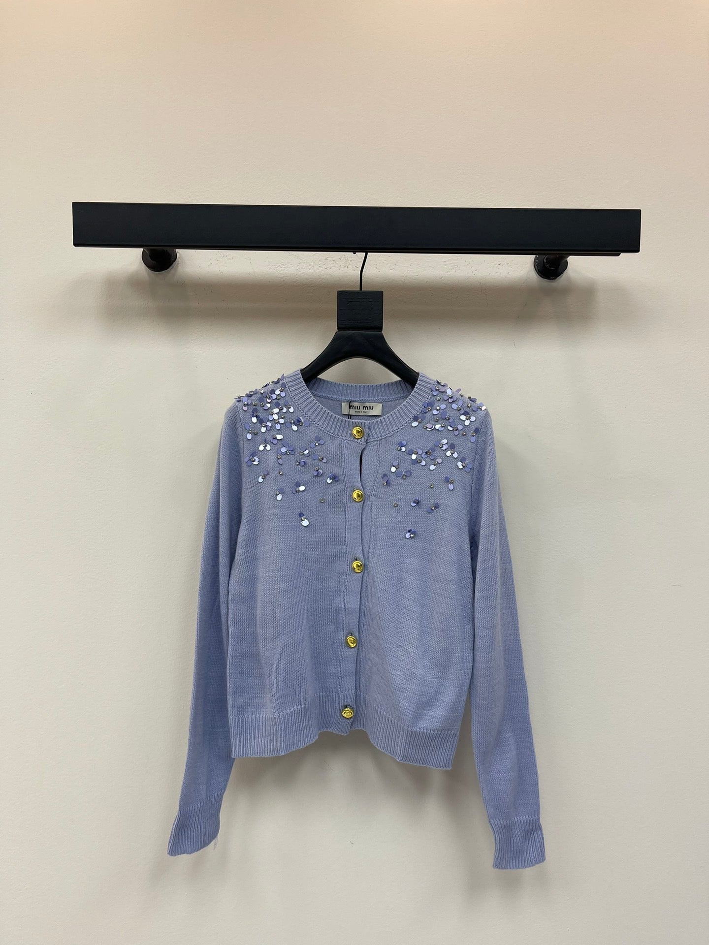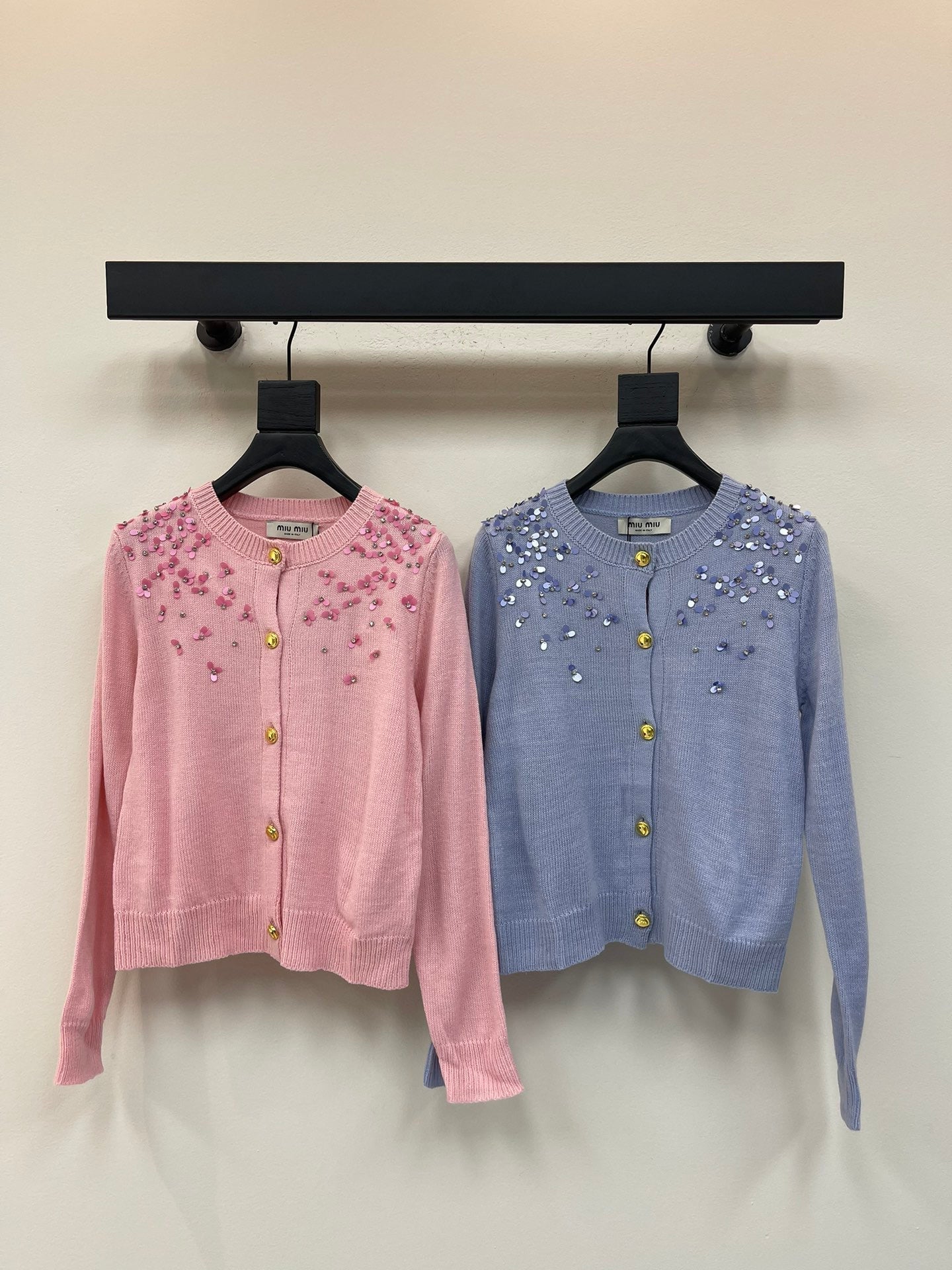 25 New Early Autumn Heavy Sequin Round Neck Long Sleeve Knit Cardigan! Customized wool knit material, comfortable and stylish, relaxed and fashionable, round neck cardigan tailoring, collar and cuffs threaded edging, comfortable and stretchy, a must-have fashion focus for commuting, dating and vacation! SML
