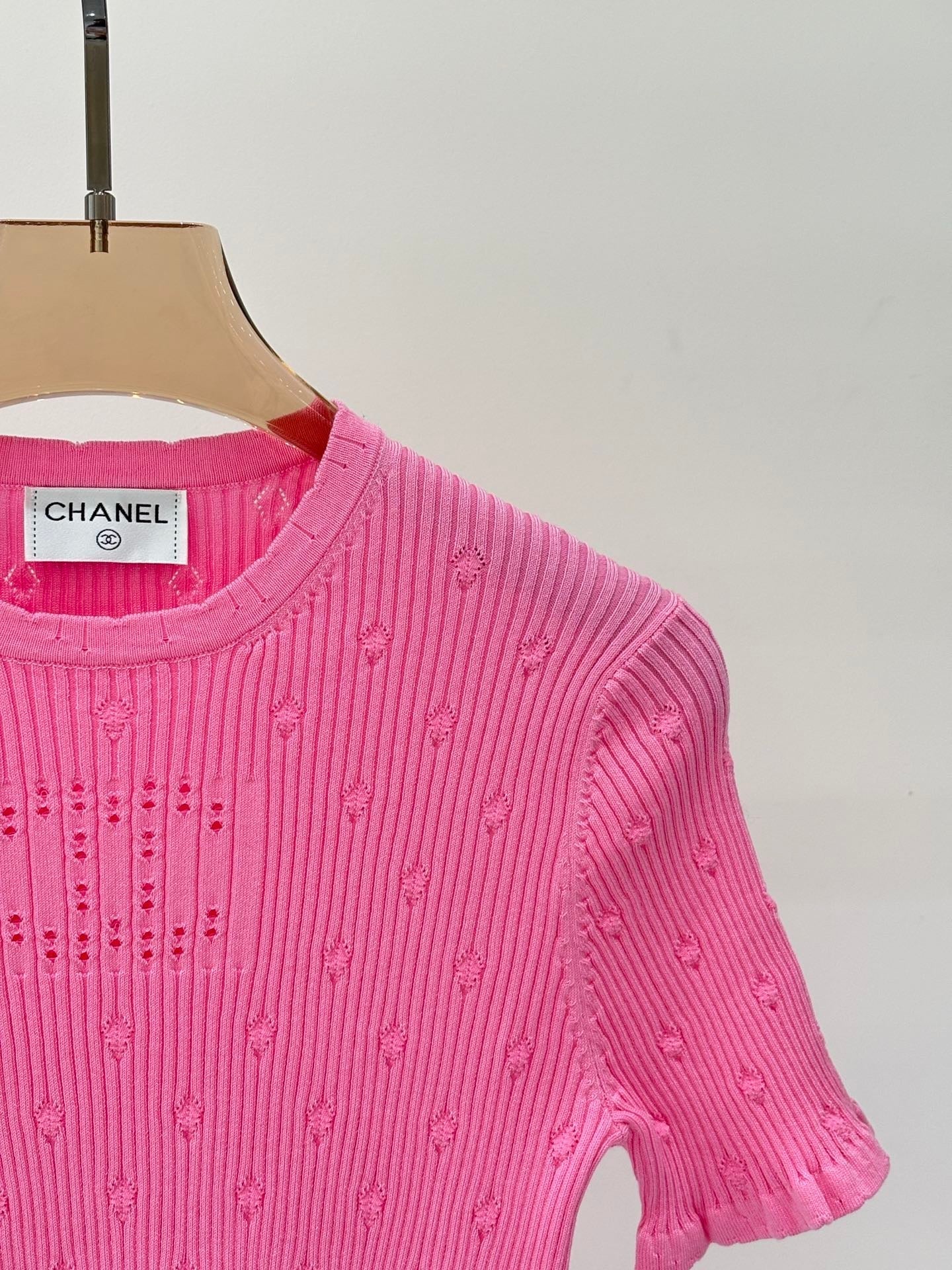 25 Summer new round neck letter logo hollow jacquard simple slim knitted short sleeves